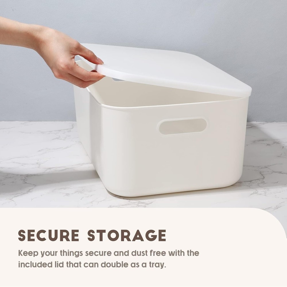 These storage bins are a game-changer for keeping things tidy! The sleek white design fits anywhere, and the stackable feature saves so much space. The sturdy handles make them easy to carry, and the secure lids keep dust out. Perfect for organizing everything from office supplies to kids' toys—love how versatile they are!