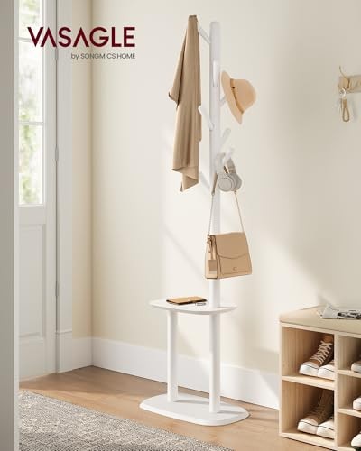 Return Policy Fast Delivery Trusted seller Coat Rack, Free Standing Coat Stand, Hall Coat Tree with 8 Hooks and Storage Shelf, 67.2 Inch Tall, for Coats, Hats, Bags, for Entryway, Hallway, Bedroom, Cloud White URCR040W01 Product Description 【MULTIFUNCTIONAL COAT RACK】With 8 hooks for your coats, hats, and bags, and a handy shelf for sunglasses, wallets, and keys, this coat rack keeps your essentials in one convenient spot, simplifying your daily routine 【SAFE, STABLE, AND STURDY】Rounded hooks protect your clothes from scratches. A large base provides stable and reliable support. Each hook holds up to 8.8 lb, and the shelf holds up to 22 lb, giving you peace of mind that your belongings are secure 【PERFECT HEIGHT, EASY ACCESS】At 67.2" tall, this coat stand makes it simple to reach items on the top hook. The open shelf, just 18.6" from the ground, lets you grab and store your belongings with ease 【ADAPTABLE USE】Blending practical use with aesthetic charm, this freestanding coat rack is the perfect addition to tidy up and beautify your entryway, hallway, bedroom, walk-in closet, or office 【HASSLE-FREE ASSEMBLY】No need to be botd about the assembly. The marked parts and easy-to-follow instructions will help you to set up this hall tree in jig time Shipping Returns Payment Shipping Shipping is FREE to all addresses other than APO/PO boxes in the lower 48 states. All our stock ships from US-based warehouses. Shipped via USPS or UPS (depending on location and package weight) Unless stated otherwise, all orders will ship within 24-72 hours of your payment being processed. Check our feedback to see the great reviews of FAST shipping we offer. Returns Seller does not accept returns Payment We currently accept payment via eBay managed payments only. Once payment is cleared, we will dispatch your shipment within 1-3 business days. Please refer to the "Shipping" tab for more information regarding shipping speed to your destination.