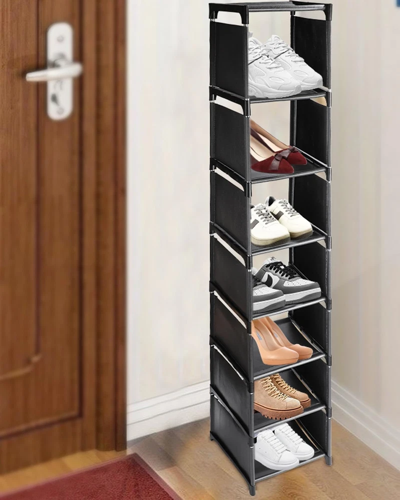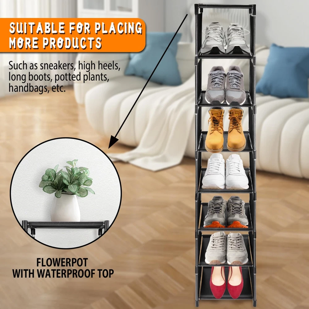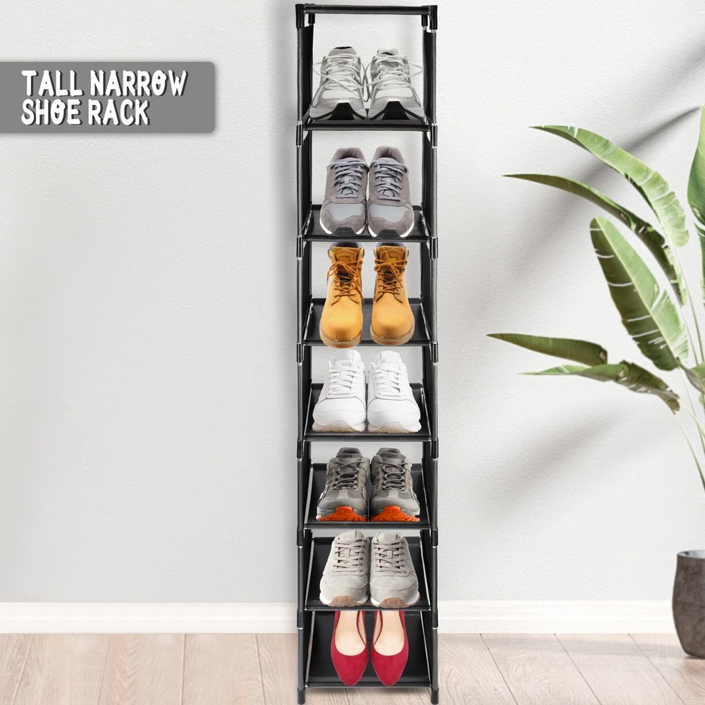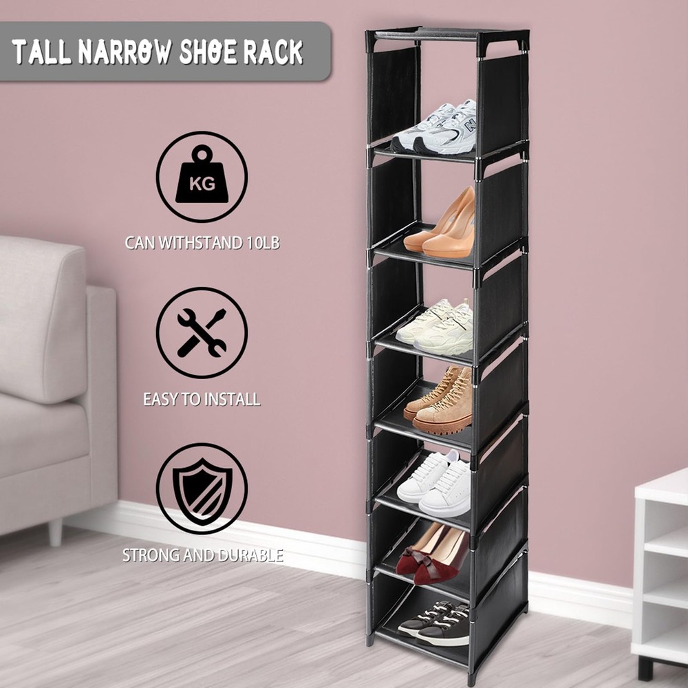 This slim shoe organizer is a lifesaver for small spaces! It fits perfectly by the door or in a tight closet, holding up to 8 pairs without taking up much room. The vertical design keeps shoes neat and easy to grab, and assembly is super flexible—use it stacked or single-tier. Sturdy, space-saving, and great for dorms, apartments, or entryways. Love how it keeps everything organized!