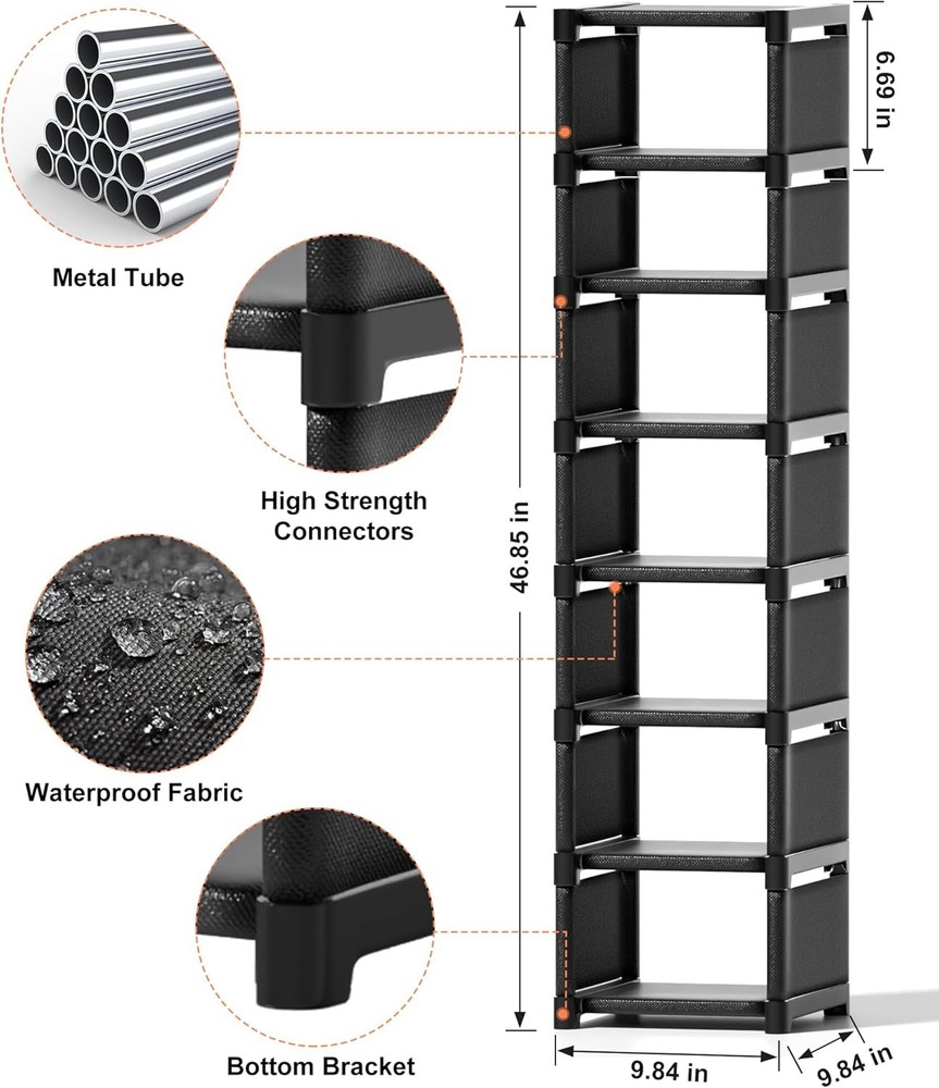 Space Saving Shoe Rack: This narrow shoe rack can maximize vertical space utilization and save floor space.The minimalist frame design makes it easy to move and position in small spaces, fully utilizing compact storage space Flexible Combination: According to the space requirements, it can be vertically stacked into two 4-layer shoe racks, or stacked into one 8-layer shoe rack. You can remove the middle layer to adjust the height, so it can accommodate high boots. You can also DIY a vertical shoe rack according to your own needs Sturdy Material & Dustproof : The tall shoe rack is made of durable non-woven fabric layers, reinforced plastic connectors, and thickened metal tube, with good stability and rust resistance. The Shoe Shelf is easy to clean, w... Happylistings 8-Tier Vertical Shoe Rack Narrow Space Saving Corner Organizer Metal Free Standing Storage Non-Woven Fabric Shelf For Closet Entryway Bedroom Garage-Black Space Saving Shoe Rack: This narrow shoe rack can maximize vertical space utilization and save floor space.The minimalist frame design makes it easy to move and position in small spaces, fully utilizing compact storage space Flexible Combination: According to the space requirements, it can be vertically stacked into two 4-layer shoe racks, or stacked into one 8-layer shoe rack. You can remove the middle layer to adjust the height, so it can accommodate high boots. You can also DIY a vertical shoe rack according to your own needs Sturdy Material & Dustproof : The tall shoe rack is made of durable non-woven fabric layers, reinforced plastic connectors, and thickened metal tube, with good stability and rust resistance. The Shoe Shelf is easy to clean, without letting clutter fall on the shelf below, keeping each shoe clean Multifunctional Shoe Rack: This shoe holder is not only suitable for storing shoes, but can also be used to store handbags, clutter, books, and plants.The compact shoe organizer is perfect for small living spaces such as garages,dormitories,walk-in closets, apartments,balcony,doorway, and living rooms.It simplifies organization, maximizes space, and maintains a tidy environment Easy to Assemble: No tools are required to assemble this shoe rack, just use the provided parts to assemble it by hand. Simply thread the tubes through the non-woven fabric layers, and then insert them into the plastic connectors. Once you assemble these components vertically, you are done Item Specifics Brand Unbranded Type Free Standing Shoe Racks Color Shoerack-black Room Type Entryway, Bedroom, Living Room Number of Shelves 8 Special Feature Sturdy, Durable, Easy Assembly Product Dimensions 9.84"D x 18"W x 33.46"H Style Modern Finish Type Stainless Steel Size 8-Tier Assembly Required Yes Recommended Uses For Product Shoes Item Weight 1.78 Pounds Furniture Finish Metal Tube, Plastic Connector Installation Type Freestanding Item Weight 1.78 pounds #414,948 in Home & Kitchen (See Top 100 in Home & Kitchen) #414,948 in Contact Us 1.Dear customers, we appreciate your business, our aim is to provide Top Level Customer Service,if you are satisfied with our service, please leave us a 5 star positive feedback . 2.If you have any question or concern about your eBay order, please feel free to let us know. We will try our best to reply all questions within 24 hours. However, no answer will be replied during weekends or holidays. Please allow up to 48 hours delay in receiving our response after long weekends or holidays. 3.Please via eBay Message for a solution for resolutions before leaving negative feedback, we strive to providing the greatest service and bringing the highest satisfaction to all of our customers. Shipping 1.We usually ship within 3-5 business days of receiving cleared payment., and we provide Free Shipping for most items. 2.Fast shipping is very important for us. We use multiple fulfilment warehouse around the United States. We only ship to the lower 48 States and do not ship to PO Boxes. 3.Please make sure the correct Ship-To address is entered before checking out. Once the payment is completed, you may not be able to change the shipping address. We shall not be held responsible for any wrong or undeliverable addresses. Returns 1.We provide 14 days return upon the buyer received the item. It must be in good condition and you will undertake the returned shipping cost. 2.We will offer replacement or refund for all DEFECTIVE items (not including damage resulting from accidents / abuse / misuse / improper care), but a photo is needed for our reference beforehand and should be reported to us within 7 days from purchase date. 3.All items are brand new and have been passed the quality check. All are packed in a good condition before item dispatch. Payment We accept PayPal payment,PayPal Credit,Credit card or debit card and so on. Payment should be completed within 4 (Four) days of auction closing. Or unpaid dispute will be filed for closing auction. We will leave a positive feedback immediately after payment is received. We appreciate a positive feedback as much as you do. If for some reason there is any issue with the purchase, please contact us prior to leaving feedback, we will be glad to work together and provide a satisfying solution. Happylistings DESCRIPTION PAYMENT SHIPPING RETURN POLICY CONTACT US Help & Info Payment Policy Shipping Policy Return Policy FAQ About Us 8-Tier Vertical Shoe Rack Narrow Space Saving Corner Organizer Metal Free Standing Storage Non-Woven Fabric Shelf For Closet Entryway Bedroom Garage-Black Space Saving Shoe Rack: This narrow shoe rack can maximize vertical space utilization and save floor space.The minimalist frame design makes it easy to move and position in small spaces, fully utilizing compact storage space Flexible Combination: According to the space requirements, it can be vertically stacked into two 4-layer shoe racks, or stacked into one 8-layer shoe rack. You can remove the middle layer to adjust the height, so it can accommodate high