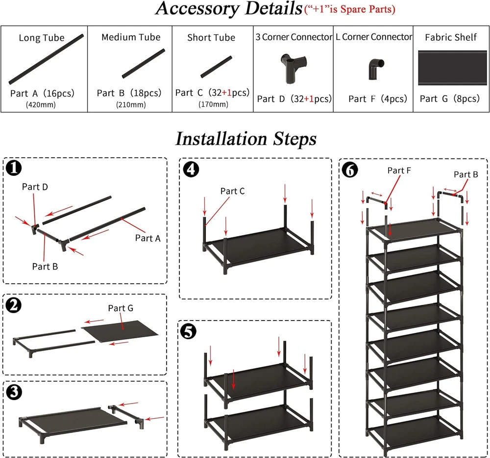 【Large Capacity&Multifunctional】The 8-Tier narrow shoe rack stores up 16-20 pairs of shoes and the partition cloth is waterproof dustproof and oil-proof.This shoe organizer is not only suitable for shoes, but also for bags, toys, towels, sundries, books, plants and small accessories. 【Space Saving Narrow Shoe Shelf】Dimension:18" W×10" D×58" H ,With a height of 7.2 inches between layers.The simple structure and light weight make the narrow shoe rack in the closet,hallway, living room, or bedroom,entryway, foyer,dormitory, patio, garage, etc. 【DIY&Expandable】With this 8-layer shoe tower, you can split into the number of layers you need, such as 3+5 layers or 4+4 layers.Remove one layer to fit boots, high heels or larger accessories. 【Thic... Happylistings 8-Tier Tall Shoe Rack For Closet, Entryway, Adjustable Sturdy Durable Shoe Shelf,Narrow Shoe Stand Organizer (18" W×10" D×58" H,Black) 【Large Capacity&Multifunctional】The 8-Tier narrow shoe rack stores up 16-20 pairs of shoes and the partition cloth is waterproof dustproof and oil-proof.This shoe organizer is not only suitable for shoes, but also for bags, toys, towels, sundries, books, plants and small accessories. 【Space Saving Narrow Shoe Shelf】Dimension:18" W×10" D×58" H ,With a height of 7.2 inches between layers.The simple structure and light weight make the narrow shoe rack in the closet,hallway, living room, or bedroom,entryway, foyer,dormitory, patio, garage, etc. 【DIY&Expandable】With this 8-layer shoe tower, you can split into the number of layers you need, such as 3+5 layers or 4+4 layers.Remove one layer to fit boots, high heels or larger accessories. 【Thickened Material】The tall shoe rack is made of durable waterproof non-woven fabric layers, reinforced plastic connectors and thickened metal tubes,The Non-woven fabric is waterproof, dust proof, easy to clean, and has a good load-bearing capacity. 【Easy to Assemble】No tools required,MUAHRCE large shoe shelf provides detailed installation instructions, so that you can assemble it more quickly. 【Worry-free service】Any quality problem with product,replace it with a new one for free or get a refund. Item Specifics Brand Unbranded Type Free Standing Shoe Racks Room Type 走廊 Number of Shelves 8 Special Feature Adjustable Product Dimensions 10"D x 18"W x 58"H Style Minimalist Finish Type Coated Product Care Instructions Wipe with Damp Cloth Size 8-Tier-Black(18" W×10" D×58" H) Assembly Required Yes Recommended Uses For Product Storing and organizing shoes Number of Items 1 Included Components Plastic,Fabric,Metal Model 8-Tier Tall Shoe Rack Item Weight 1.2 Pounds Furniture Finish Coated Installation Type Freestanding Min. Required Door Width 10 Inches Specific Uses For Product Shoes Unit Count 8.0 Count Product Name 8-tier-black shoe rack Item Weight 1.2 pounds Contact Us 1.Dear customers, we appreciate your business, our aim is to provide Top Level Customer Service,if you are satisfied with our service, please leave us a 5 star positive feedback . 2.If you have any question or concern about your eBay order, please feel free to let us know. We will try our best to reply all questions within 24 hours. However, no answer will be replied during weekends or holidays. Please allow up to 48 hours delay in receiving our response after long weekends or holidays. 3.Please via eBay Message for a solution for resolutions before leaving negative feedback, we strive to providing the greatest service and bringing the highest satisfaction to all of our customers. Shipping 1.We usually ship within 3-5 business days of receiving cleared payment., and we provide Free Shipping for most items. 2.Fast shipping is very important for us. We use multiple fulfilment warehouse around the United States. We only ship to the lower 48 States and do not ship to PO Boxes. 3.Please make sure the correct Ship-To address is entered before checking out. Once the payment is completed, you may not be able to change the shipping address. We shall not be held responsible for any wrong or undeliverable addresses. Returns 1.We provide 14 days return upon the buyer received the item. It must be in good condition and you will undertake the returned shipping cost. 2.We will offer replacement or refund for all DEFECTIVE items (not including damage resulting from accidents / abuse / misuse / improper care), but a photo is needed for our reference beforehand and should be reported to us within 7 days from purchase date. 3.All items are brand new and have been passed the quality check. All are packed in a good condition before item dispatch. Payment We accept PayPal payment,PayPal Credit,Credit card or debit card and so on. Payment should be completed within 4 (Four) days of auction closing. Or unpaid dispute will be filed for closing auction. We will leave a positive feedback immediately after payment is received. We appreciate a positive feedback as much as you do. If for some reason there is any issue with the purchase, please contact us prior to leaving feedback, we will be glad to work together and provide a satisfying solution. Happylistings DESCRIPTION PAYMENT SHIPPING RETURN POLICY CONTACT US Help & Info Payment Policy Shipping Policy Return Policy FAQ About Us 8-Tier Tall Shoe Rack For Closet, Entryway, Adjustable Sturdy Durable Shoe Shelf,Narrow Shoe Stand Organizer (18" W×10" D×58" H,Black) 【Large Capacity&Multifunctional】The 8-Tier narrow shoe rack stores up 16-20 pairs of shoes and the partition cloth is waterproof dustproof and oil-proof.This shoe organizer is not only suitable for shoes, but also for bags, toys, towels, sundries, books, plants and small accessories. 【Space Saving Narrow Shoe Shelf】Dimension:18" W×10" D×58" H ,With a height of 7.2 inches between layers.The simple structure and light weight make the narrow shoe rack in the closet,hallway, living room, or bedroom,entryway, foyer,dormitory, patio, garage, etc. 【DIY&Expandable】With this 8-la