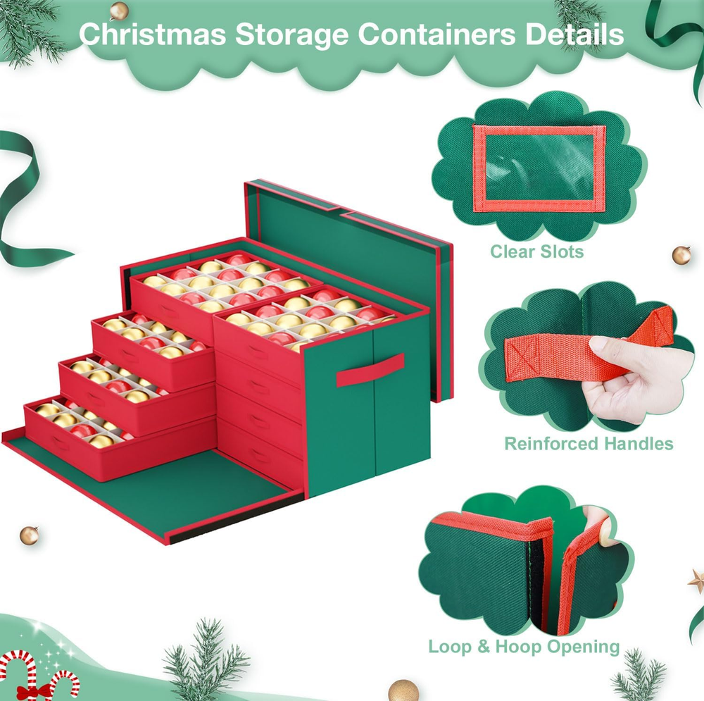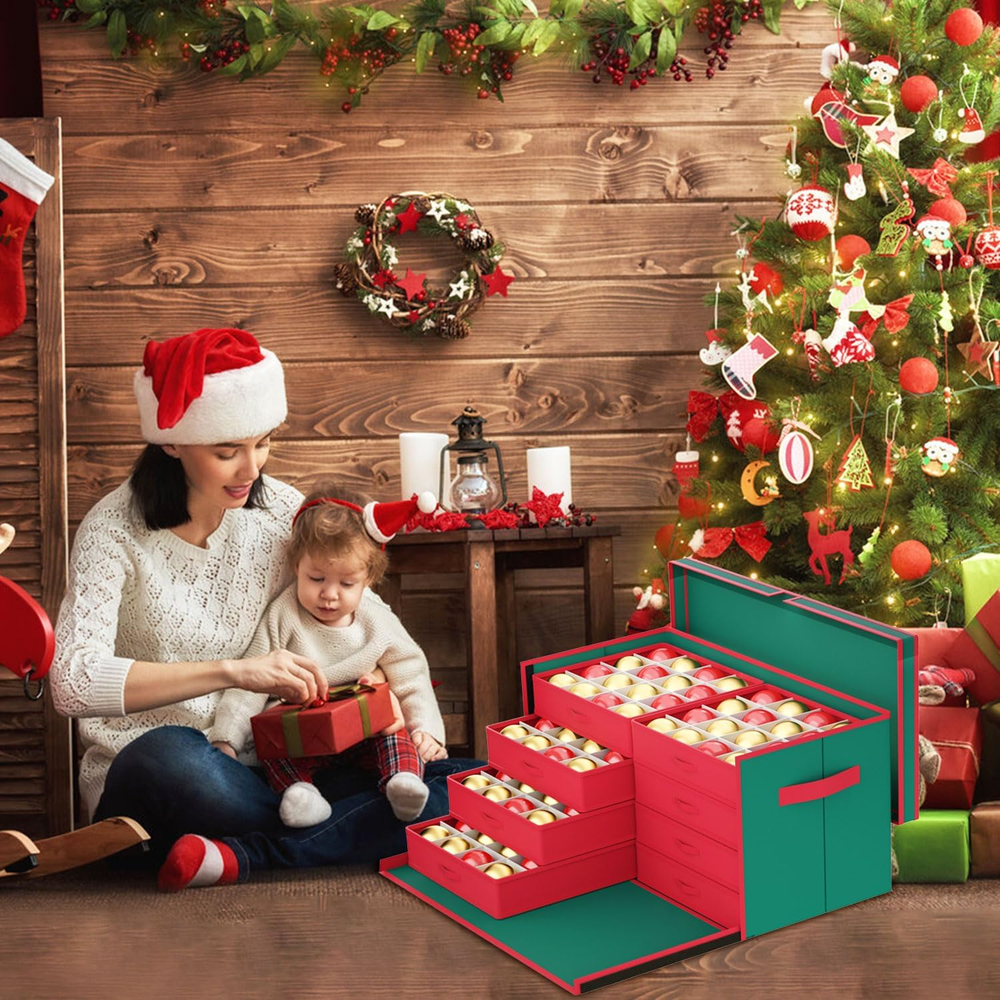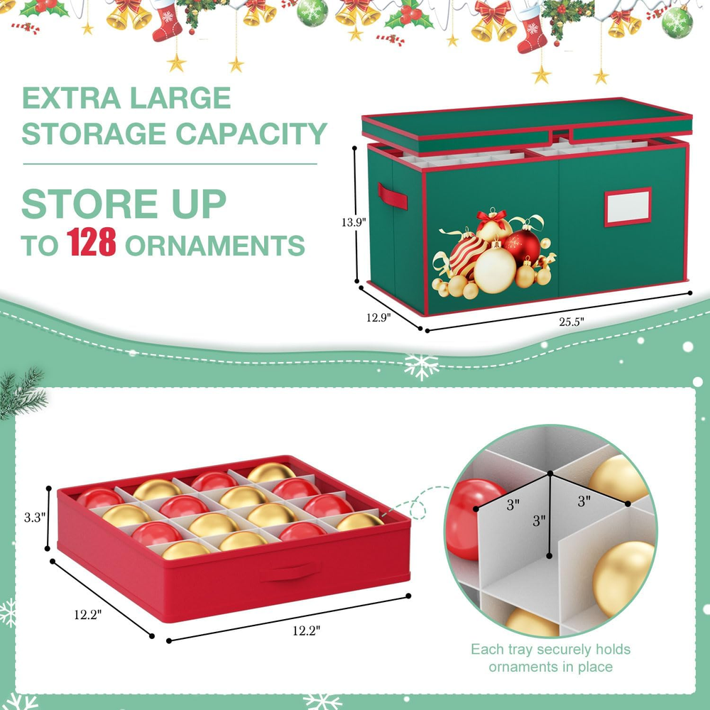 8-Tray Christmas Ornament Storage Box Holds 128 3-Inch Ornaments