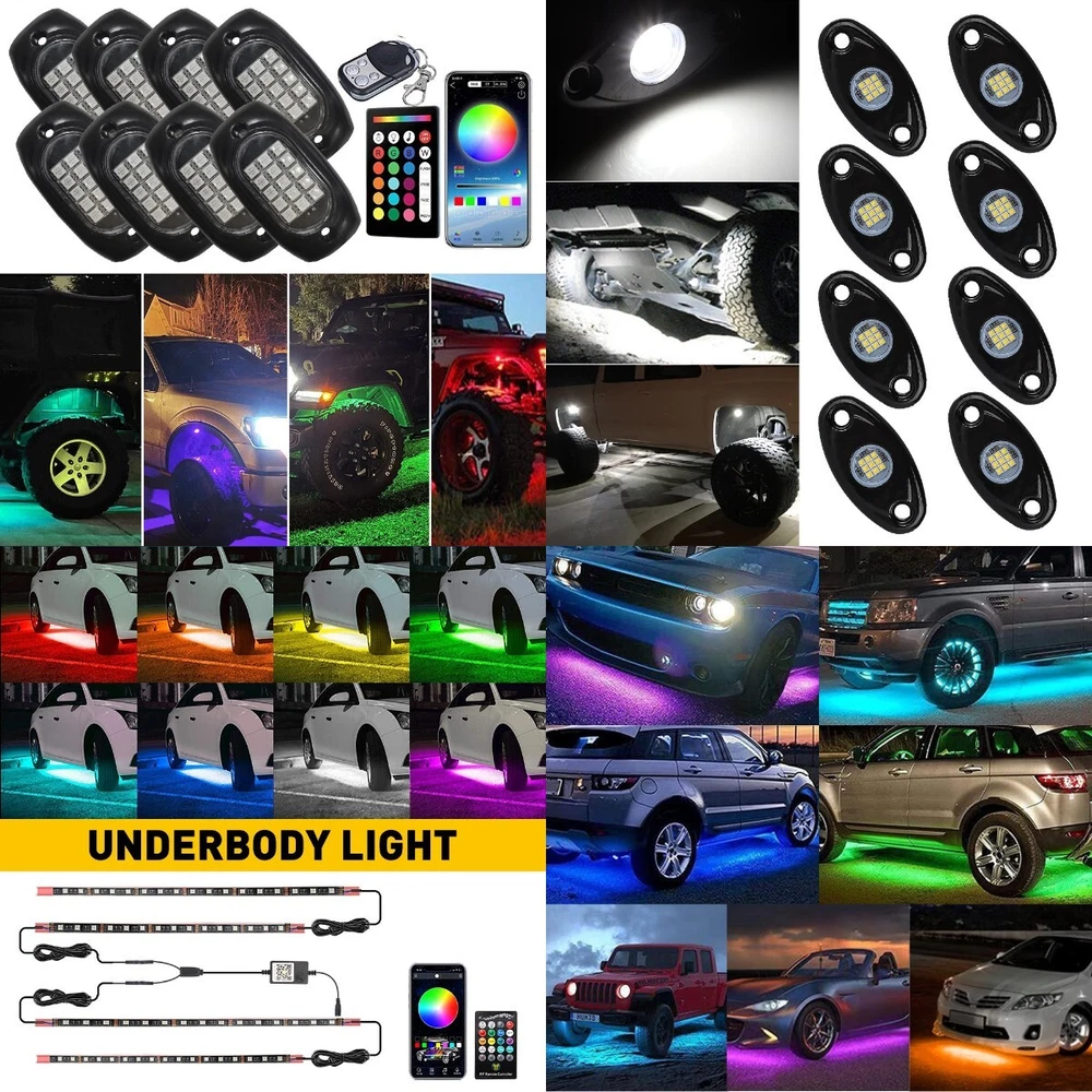 8PCS WHITE Specification: Suitable models: Universal, including cars, SUVs, JEEP, truck, etc Connection mode: red wire to the positive pole, black wire to the negative pole Placement on vehicle:Under,Fender,Wheel eyebrow, grill,wheel arch etc. LED Quantity: 9 LED Per Light Voltage: DC 10V-14V Material: Diecast Aluminum Housing Color: White Service life: 50000+ hours Waterproof:IP68 Housing color:Black Features: *Brilliant brightless: High intensity chip to light up the entire under car. *Wateproof design: High waterproof rating (IP68)with long service life. 8X White LED Rock Lights Underbody Trail Rig Glow Lamp Offroad SUV Pickup Truck 8PCS WHITE Specification: Suitable models: Universal, including cars, SUVs, JEEP, truck, etc Connection mode: red wire to the positive pole, black wire to the negative pole Placement on vehicle:Under,Fender,Wheel eyebrow, grill,wheel arch etc. LED Quantity: 9 LED Per Light Voltage: DC 10V-14V Material: Diecast Aluminum Housing Color: White Service life: 50000+ hours Waterproof:IP68 Housing color:Black Features: *Brilliant brightless: High intensity chip to light up the entire under car. *Wateproof design: High waterproof rating (IP68)with long service life. *Universal Application: This LED rock lights widely fit for JEEP, Rock crawlers, rock bouncers, off-road, truck, UTV, ATV, SUV, RV, boat, golf cart, tow vehicles, Camp trailer trailers, trikes, street rods, drifters, low riders, racers, etc *DIY Style: Mini design makes the rock lights easy to mount anywhere you want. Perfect for car lights, off-road lights, truck bed lights, van lights, camp trailer lights, tow vehicles lights, boat lights, etc. Packaging included: 8 PCS LED Rock Lights 1 SET Installation Kit 1T8 RGB Specification: Suitable models: Universal, including cars, SUVs, JEEP, truck, etc Voltage: 12V Waterproof : IP68 LED Type: 5050 SMD LED Chip:Smart 3 in 1 LED Chip,give you more,3x Brighter LED number: 120 LED Total,15 LED Per Light Control:Bluetooth APP + Dual Remote Control Color: red, green, blue, white, orange, yellow, blue, purple and other colors Features: *Double control Model: Multiple Modes to meet all your needs(APP + 24 key wireless remote control). *Brilliant brightless: High intensity chip, lighting up the entire under car. *Wateproof design: High waterproof rating (IP68)with long service life. *RGB Multiple-colors: 16 million colors to you DIY different lighting scenarios. Each pod can shoot super bright * Superior quality: 3M adhesive with high-quality to stick more firmly. Drilling also can be done for fixing. Packaging included: 8x RGB LED Rock Lights 1x 24 Key Remote Control 1x 4 Key Remote Control 1x Installation Kit 1T4 RGB Suitable models: Universal, including cars, SUVs, JEEP, truck, etc Remote control: APP+ Remote control Product length: 90cm and 120cm (35.4inch and 47.2inch), split wire length: 170cm (66.9inch) LED type: 5050 SMD LED Quantity: 210PCS Connection mode: red wire to the positive pole, black wire to the negative pole Control range: 1-10 meters Color: red, green, blue, white, orange, yellow, blue, purple and other colors Waterproof grade: IP68 Service life: 50000+ hours Features: *Double control Model: APP + 24 key wireless remote control,easy to operate. Multiple Modes to choose for meeting all your needs(with music mode, DIY mode, multi-color mode, timing function). *Brilliant brightless: High intensity SMD 5050 LED chip, lighting up the entire under car. *Wateproof design: High waterproof rating (IP68)with long service life. *Superior 3M tape: 3M tape is used for sticking and fixing firmly. *Heavy-duty construction: Silicone-injected tubing, both ends of the lamp body are well sealed, it will shine well whatever in rainy or snowy days. 2 Control Methods You can control the Car Underglow Lights by APP or Remote Control It is equipped with a remote control to switch on and off, change modes and colors. Scan the QR code to download APP (compatible with iPhone and Android), connect the Bluetooth device to set your own lighting effect. Packaging included: 4 x led strips 1 x mounting hardware set Item Specifics Features CANbus Compatible Bulb Fitment Code C5W Manufacturer Warranty One Year Warranty Application 2 for trikes, street rods, drifters, low riders, racers, etc. MPN Does Not Apply Lifetime 50,000 Hours OE/OEM Part Number AUXITOLED Voltage DC 10V~14V Fitment Type Performance/Custom Performance Part Yes Lighting Technology LED Suitable For Accessory Light Underbody Light Size 2 Inch Lumens 6000 lm Display title in Boldface off Material Diecast Aluminum Housing To Fit underbody underglow wheel well decoration lights Interchange Part Number Widely used under vehicles, interior light, Grill lights, card li Color Temperature 6500K Light Color White Number of Bulbs 8 Placement on Vehicle Under, Fender, Wheel Eyebrow, Grill, Wheel Arch, Mudgua, Front, R Wattage 9W Housing Color Black Application for JEEP, Rock crawlers, rock bouncers, off-road, truck,UTV, ATV Waterproof Rate IP67 Application 1 for SUV, RV, boat, golf cart, tow vehicles, Camp trailer trailers Manufacturer Part Number Underbody Light Brand Unbranded Bulb Life Hours Up to 30,000 Hours Type Rock Light UPC 608374287890 Store priority_part22 Other Lights We Have Accessory Light Brake Light Center Brake Light Combination Light Daytime Running Light Dome Light Emergency Light Fog Light Footwell Light Glove Box Light Headlight High Beam Instrument Panel Light License Plate Light Light Bar Low Beam Other Light color we have Blue Cold White Green Multicolor Orange Pink Purple Red Ultraviolet Warm White Other light bulb we have H8B H9 H9B HB1 (9004) HB12 HB2 (9003) HB3 (9005) HB3A (9005XS) HB4 (9006) HB4A (9006XS) HB5 (9007) HIR1 (9011) HIR2 (9012) HP24W HPY24W P21W P22W PSX24W PSX26W PX24W PY21W R10W R2 R5W T4W W21W (7440) W3W (194) W5W (168) WY5W Store priority_part22 Other Lights We Have Accessory Light Brake Light Center Brake Light Combination Light Daytime Running Light Dome Light Emergency Light 