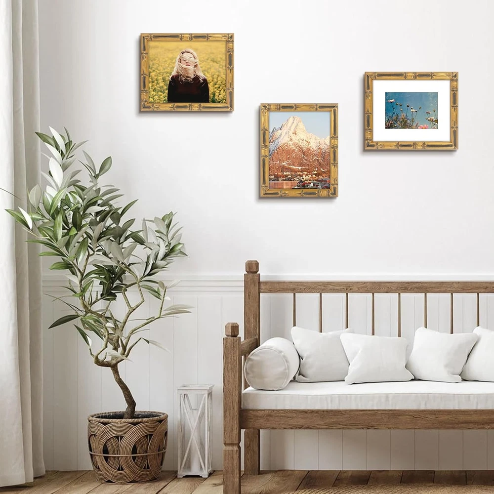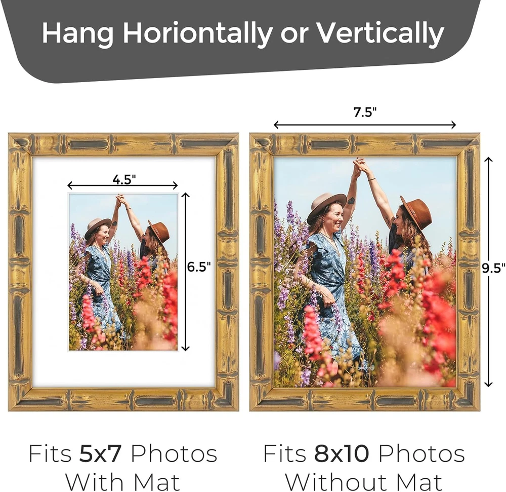 , 8X10 Bamboo Style Picture Frame with White Mat for 5X7 Photo,Color Gold with D