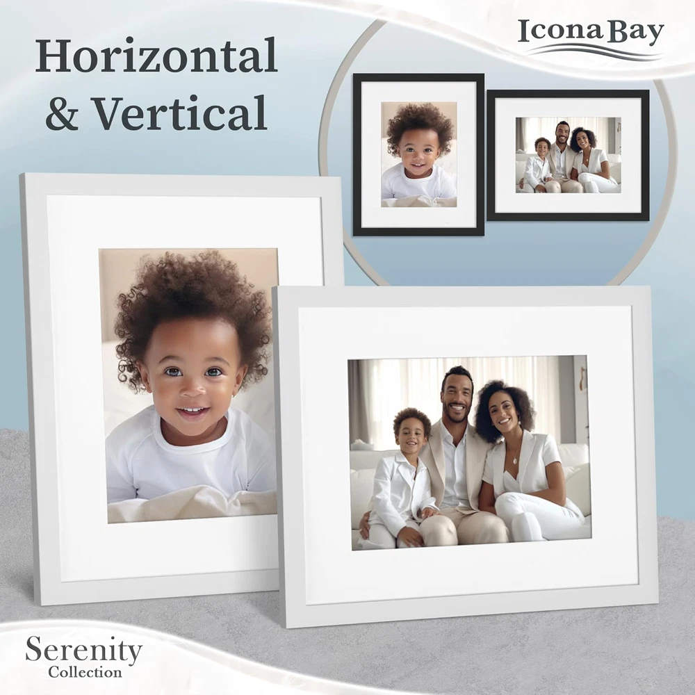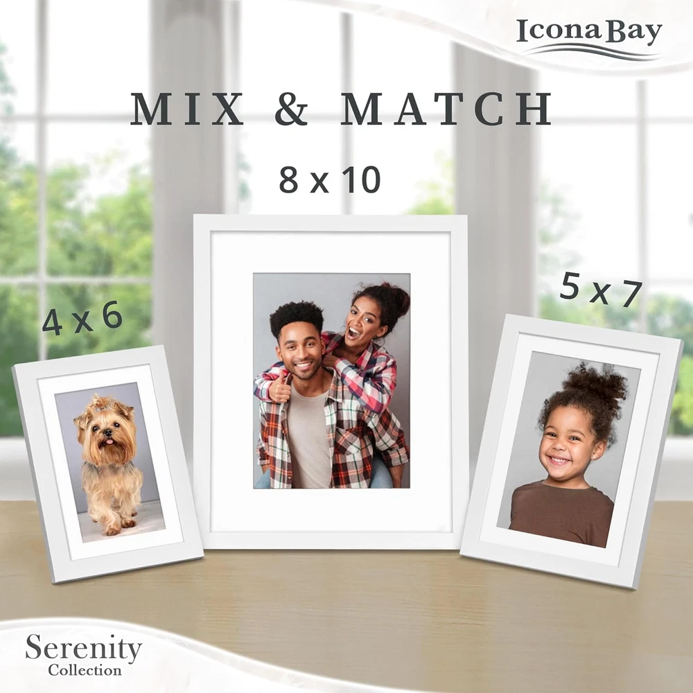 Store New Arrivals Add to Favorite View Feedback Contact 8X10 Picture Frame W/Removable Mat for 5X7 Photo (White), Sleek Modern Style Frame, Table Top or Wall Mount, Serenity Collection Description Item model number SRNT-8x10MM-WHT1 Global Trade Identification Number 00810127632653 Style Modern Number of Items 1 Mounting Type Wall Mount, Tabletop Color White Target Audience Unisex Adult Frame Type Wall and Tabletop Picture Frame Item Weight 11.7 ounces Batteries required No Shape Rectangular Frame Material Plastic Occasion Mother's Day, Grandparents Day Finish types Polished Special Feature Matted Product Dimensions 8.75"L x 10.75"W Finish Type Polished Size 8x10 Mat to 5x7 SERENE AMBIANCE - The Serenity Collection frames are more than just picture holders; they are exquisite pieces of art that exude a sense of calmness and sophistication, creating a serene ambiance in your home or office DURABLE ELEGANCE - This premium-quality frame with glossy finish is crafted from resilient PVC material, providing long-lasting protection for your cherished pictures, ensuring they remain safe and beautifully preserved VERSATILE DISPLAY - Easily hang artwork or photos in portrait or landscape orientation using the included D-ring hooks, or use the kickstand easel for tabletop display in both horizontal and vertical positions INCLUDES - 1 White 8 x 10 inch frame mat to 5 x 7 inch with 7.5 x 9.5 inch opening size; PS plastic sheet cover to protect your photo from dust and moisture; Plus, it has swivel tabs for a hassle-free setup BUY WITH CONFIDENCE - Icona Bay offers hundreds of fabulous picture frames; Visit our Icona Bay storefront or search Icona Bay Frames today! Product Description A picture is worth a thousand words and that’s why Icona Bay provides you with a frame that fits your photo and décor. Our frames come in an array of colors, sizes, and styles. From classically traditional to streamlined modern and everything in between, Icona Bay has a frame for your needs. Surround your home with loved ones, memories, events, and milestones. Inspiration is all around us. It can be a child smiling at her first birthday party, the petals of an exotic flower from that perfect vacation, or the first kiss after “I do”. Whatever your inspiration is, Icona Bay can help you capture it. A picture is not just a moment in time, it is the emotion that brings us back in time. That feeling of joy, love, and happiness helps make our days brighter and our nights more peaceful. Show off your style with Icona Bay frames. We have a frame that fits every style of art. Looking for modern and contemporary? Try our Liberty Series frames. Have a light an airy outdoor print? Match it with one of our woodsy frames from the Cherished Memories collection. Quality Construction Icona Bay frames go through a rigorous testing phase to ensure that all materials and construction methods meet our high level of quality. Our customers are our top priority and we want to ensure the best possible customer experience while using our products. The perfect size Nothing says, “Thank you” or “I love you” more than a beautifully framed photo of a loved one. Great for birthdays, anniversaries, graduations, weddings, and all of life’s other milestones. With so many styles and sizes to choose from, we have a frame that will fit the occasion. Sophisticated Design The design department at Icona Bay spends their days reviewing every finish and curve on each frame profile to ensure a beautiful, finished product. A simple change in a curve or line can transform an ordinary frame into an extraordinary one. ABOUT US We offer the best prices around on high quality products. Our E-store includes media such as books, movies, music and games while offering electronics, toys, sporting apparel, clothing, tools, general home, garden items and more. SHIPPING We are always working hard to ensure your package arrives as soon as possible. Please understand that some factors like weather, high postal traffic, and the performance of shipping companies are outside of our control. We offer free shipping to the lower 48 states and ship within 2 business days of payment, usually sooner. We do not accept P.O. Boxes. Please provide a physical address. For shipping outside of the continental USA, we only use eBay's Global Shipping Program.The item is shipped to KY and then sent to the rest of the world. International customers are responsible for all duties and taxes. Continue to check out in order to calculate costs for shipping the item to your country. Messages regarding eBay's Global Shipping Program MUST be directed at eBay EXCLUSIVELY. RETURNS We offer a 30-Day Return Policy on items which you are not completely satisfied with. You have the option for a full-refund or an exchange of the item. No returns are available on items shipped outside of the USA. PAYMENT We accept PayPal. CONTACT US This page content is yet to come Please ad us to your favorite seller and visit again later Thank You CUSTOMER SATISFACTION We try our very best to make sure every customer is completely satisfied. If there's a problem, message us! We're happy to help. WE ACCEPT Copyright © 2021 AutoDS. | All Rights Reserved