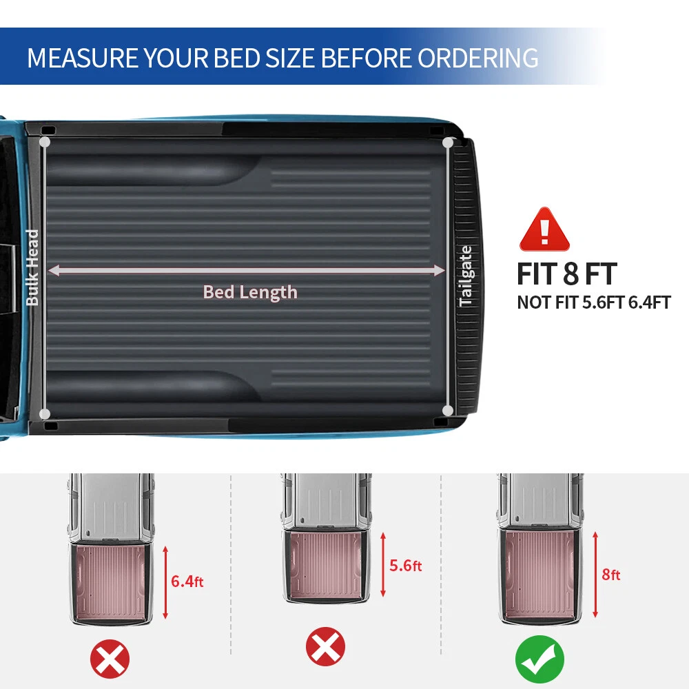 8ft Long Bed Soft 3-fold Tonneau Cover for 2002-2023 Dodge Ram 1500 2500 3500 Item Description: Fits: Compatible with 2002 Dodge Ram 1500 without Ram Box | Fleetside 8ft Compatible with 2003, 2004, 2005, 2006 Dodge Ram 1500 2500 3500 without Ram Box | Fleetside 8ft Compatible with 2007, 2008, 2009, 2010 Dodge Ram 1500 2500 3500 without Ram Box | Fleetside 8ft Compatible with 2011, 2012, 2013, 2014 Ram 1500 2500 3500 without Ram Box | Fleetside 8ft Compatible with 2015, 2016, 2017, 2018 Ram 1500 2500 3500 without Ram Box | Fleetside 8ft Compatible with 2019, 2020, 2021 2022 2023 Ram 1500 classic 2500 3500 without Ram Box | Fleetside 8ft Package include: 1x 8FT Soft Tri-fold Tonneau Cover Advantage: Quick Clamp -- Hassle-Free Installation 8 pre-set clamps, which are easily adjusted by changing the slots they stay, only can be accessed from inside. Lock your tailgate, the truck bed will be secured as a trunk. Save Energy OEDRO tonneau cover will improve your gas mileage, you can expect savings of up to 12%. Increased Security Dual tailgate paddle latches lock the tonneau cover in place when the tailgate is closed for increased security. The paddle latches can only be accessed from inside the bed. Weather Strip Included Weather stripping keeps all rain, snow, and dust out of your truck bed. For maximum protection, be sure to seal all four sides of your truck bed with weather stripping. More Display: On Feb 9, 2024 at 05:43:26 PST, seller added the following information: On Apr 24, 2024 at 13:25:49 PDT, seller added the following information: On Oct 14, 2024 at 02:11:54 PDT, seller added the following information: