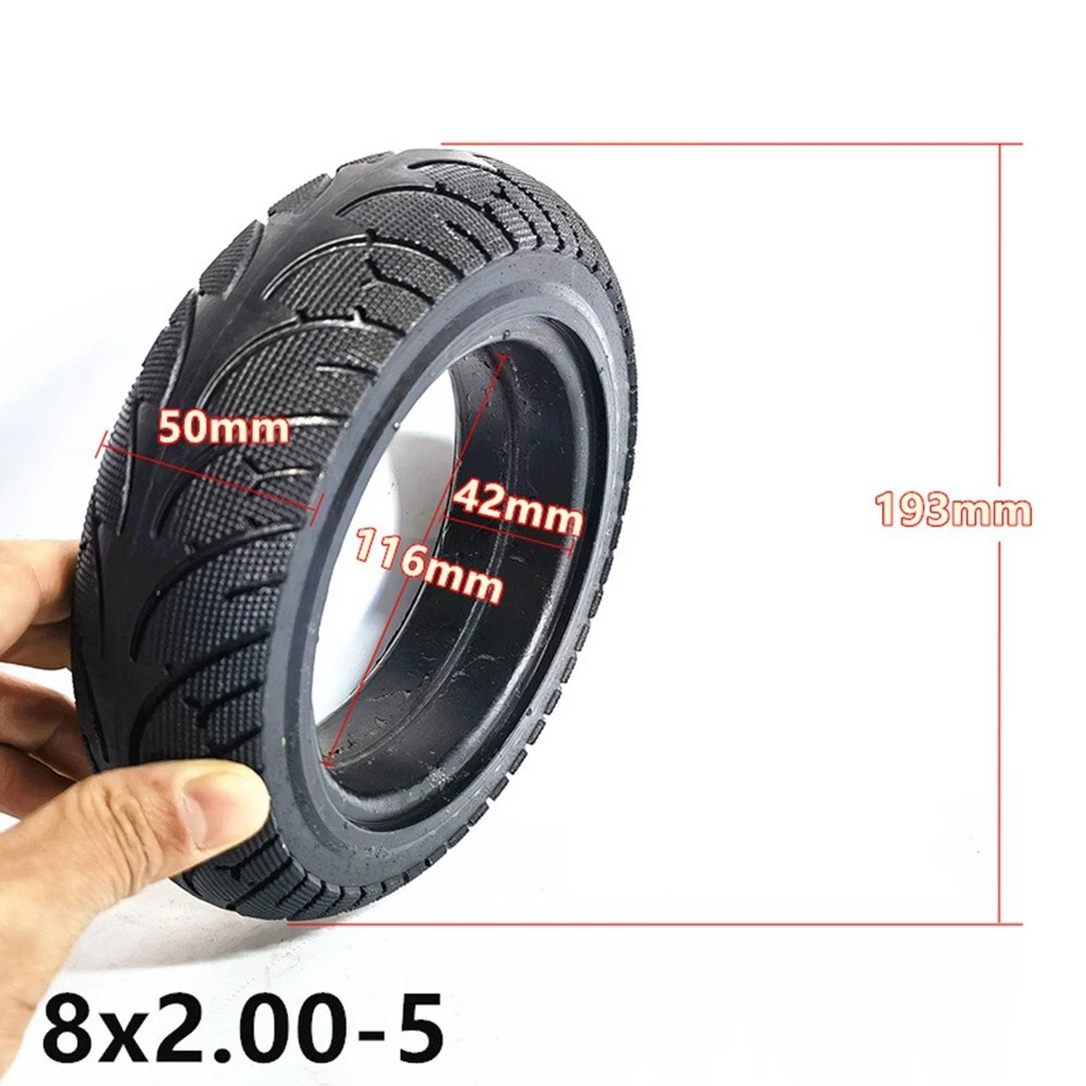 Product Description Features: *Solid tires,Anti-puncture, anti-flat tire. *Special lines on the tire exterior, better grip. *Not easy to deform, can be use for long -time. *Made of rubber, wear-resistant and not easily damaged. *8inch Solid Tyre models 8x2.00-5,For Electric Scooter and Battery car. *To avoid slipping, the inner diameter of the solid tire will be smaller than the original tire size. *Before installation, you need to boil or soak the tire in boiling water for 5-10 minutes. After the tire softens, it will be easier to install. Specifications: *Product Name:8inch 8x2.00-5 Solid tires *Material:Ruber *Size:19.3*5cm *Color:Black *Weight:About 545g Package Content: 1*Tire Note: 1. The real color of the item may be slightly different from the pictures shown on website caused by many factors such as brightness of your monitor and light brightness. 2. Please allow slight manual measurement deviation for the data. Payment Payment must be completed within 5 days. If you have any problems about payment, please contact us via ebay message. Delivery details We only ship to confirmed ebay Order addresses. Please comfirm that your Order address is in line with your shipping address. Please kindly note that the c ombined shipping is not provided because the shipping fee is calculated by weight. Also, the each additional item means exactly the the same color and size. It takes about 7 -15 working days to US; about 10-30 working days to other countries. Transit time may be a little delayed because of the bad weather and customs inspection . If you do not receive your item within 30 working days since payment finished, please contact us immediately for further assistance. Contact us We strive for 100% customer satisfaction! Positive Feedback is very important to us. If you have any questions, p lease feel free to contact us via "Ask seller a question" . We will reply your email within 24 working hours.