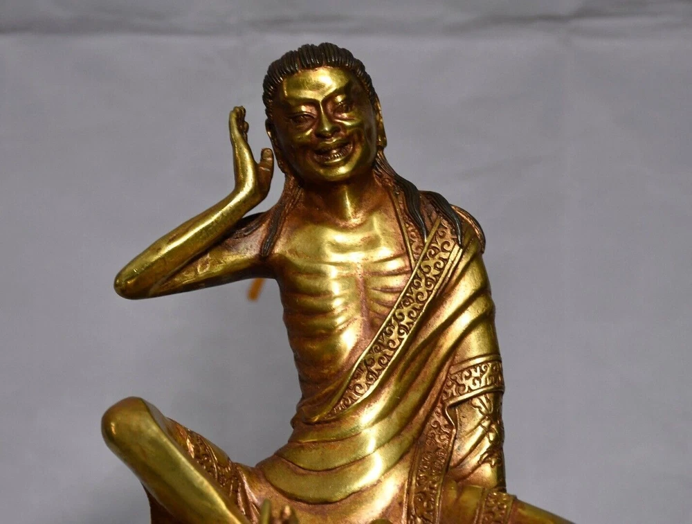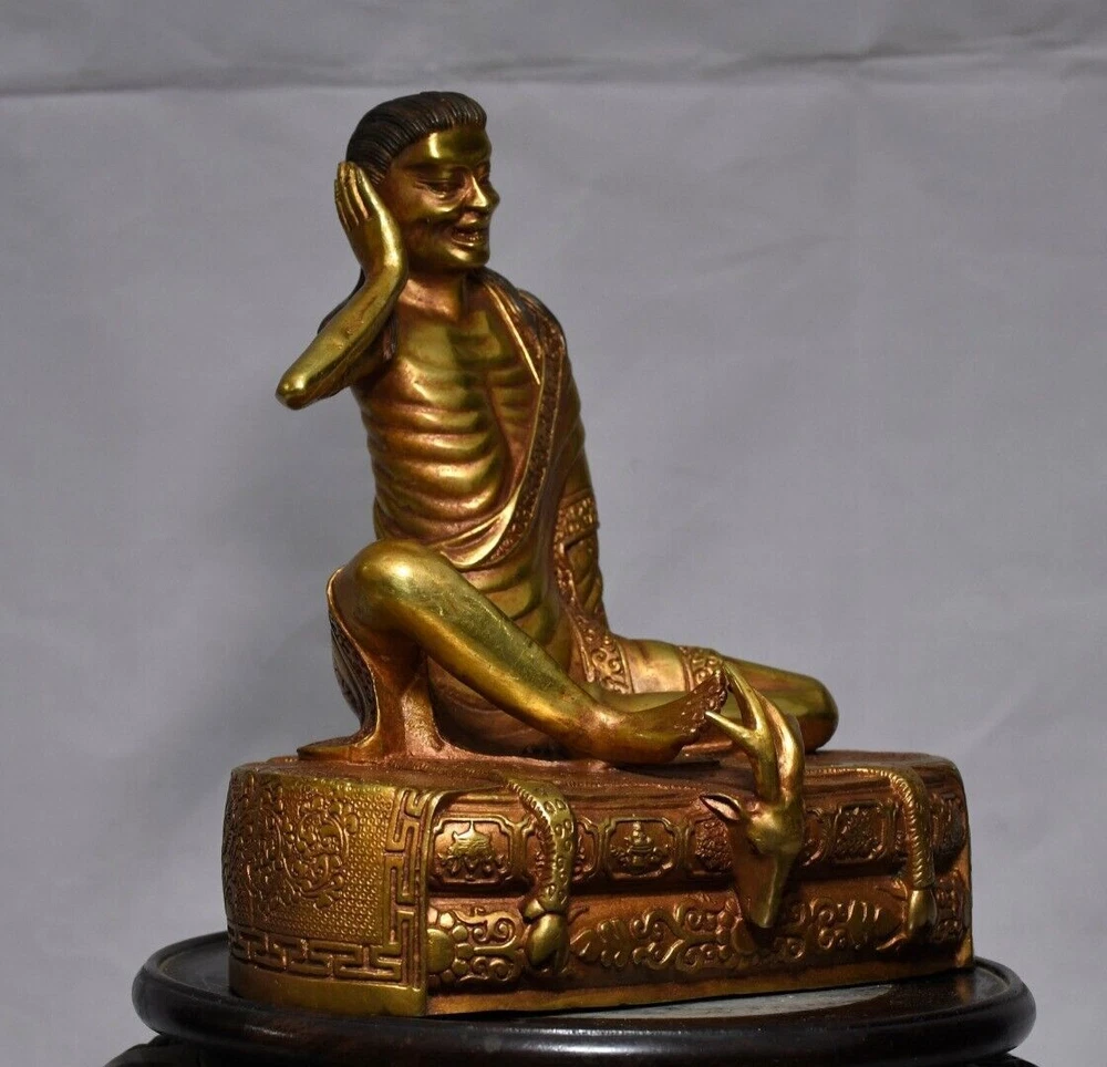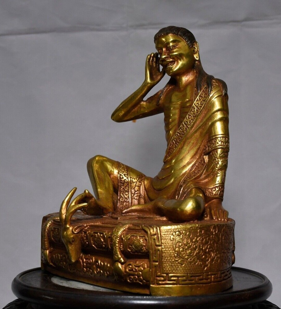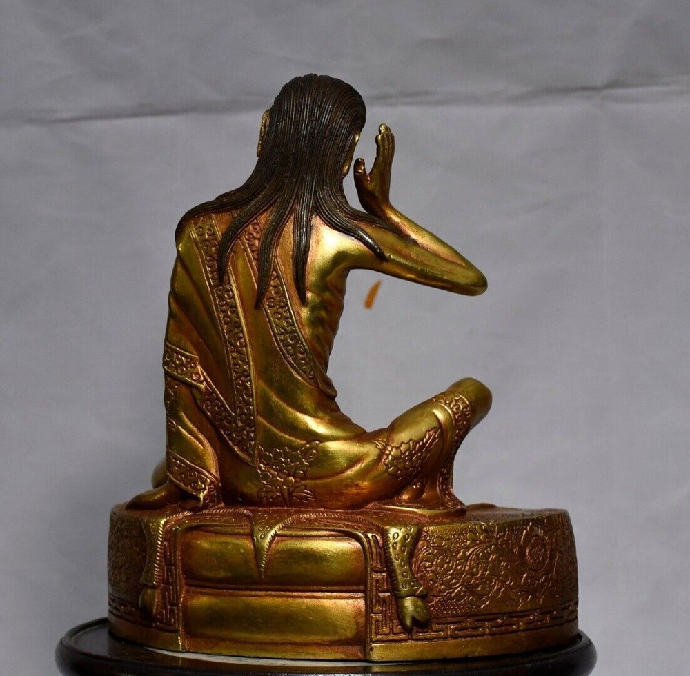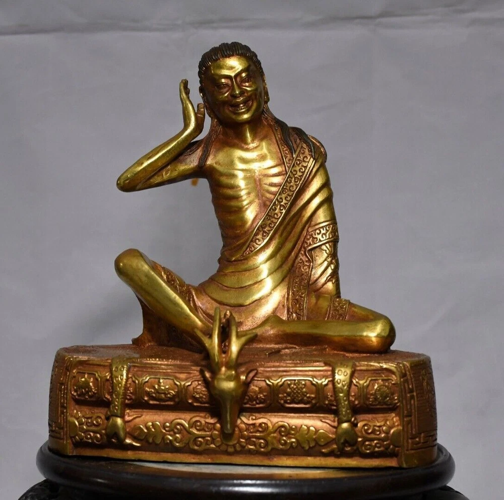 8-inch Antique Tibetan Bronze Milarepa Buddha Statue for Temple