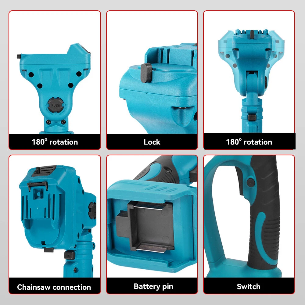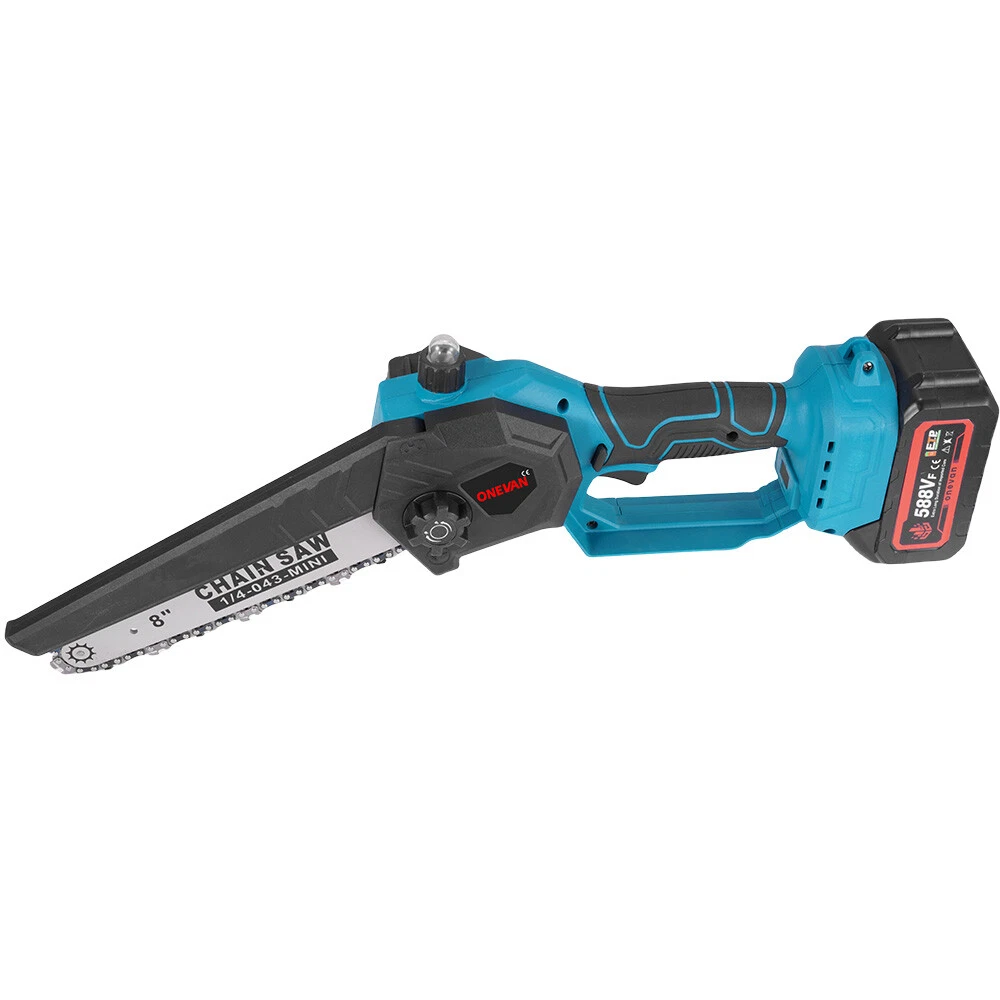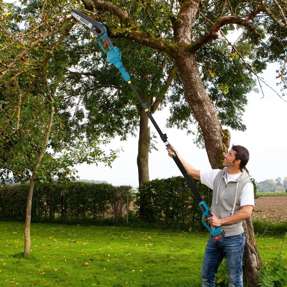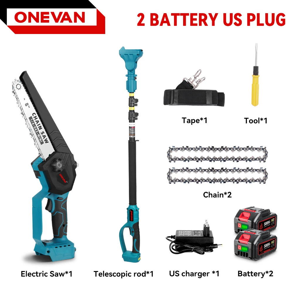 Type: Pole Chainsaw Model: High Branch Saw Machine Compatible Battery Model: Compatible with 18V Makita battery (not included) UPC: Does not apply gtin13: Does not apply Speed: 0-8000rpm Brand: ONEVAN Power Source: Battery Features: Electric, Cordless, Brushless Motor, Built-in oil pot design Guide plate: 8 inch Power: 1200 W