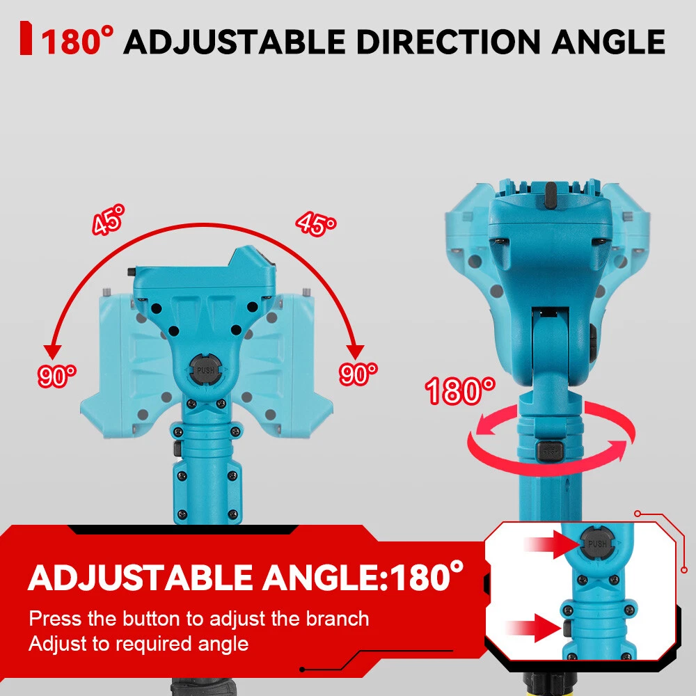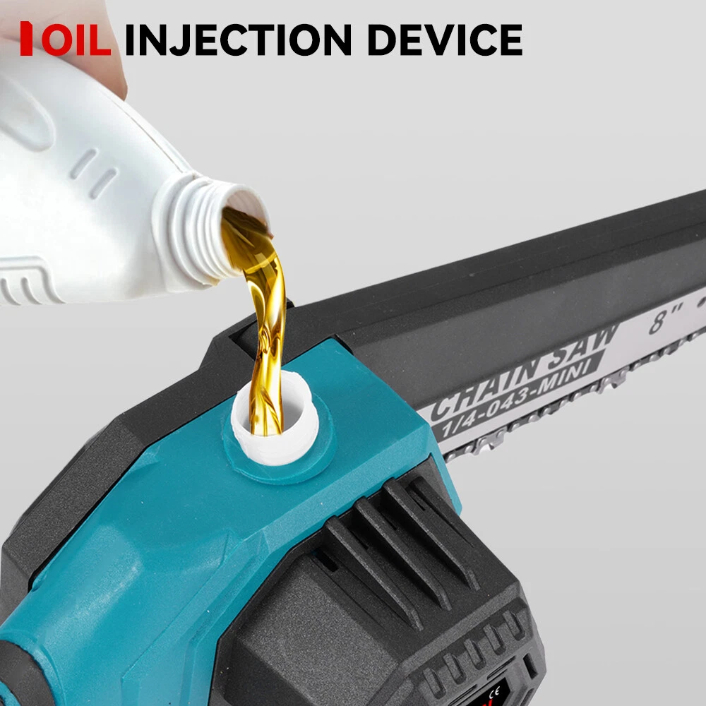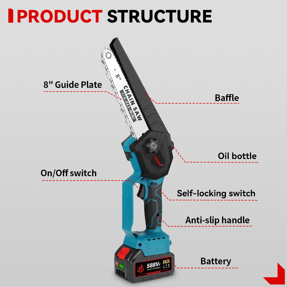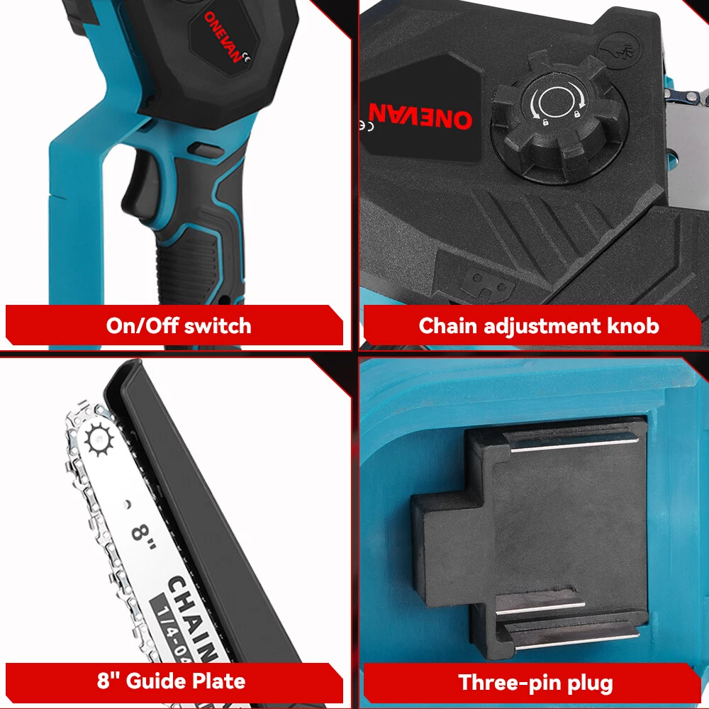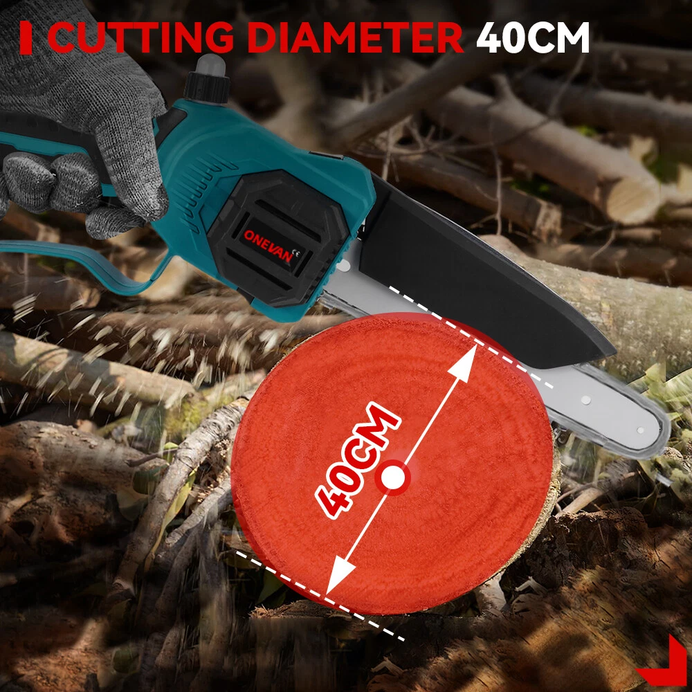Type: Pole Chainsaw Model: High Branch Saw Machine Compatible Battery Model: Compatible with 18V Makita battery (not included) UPC: Does not apply gtin13: Does not apply Speed: 0-8000rpm Brand: ONEVAN Power Source: Battery Features: Electric, Cordless, Brushless Motor, Built-in oil pot design Guide plate: 8 inch Power: 1200 W
