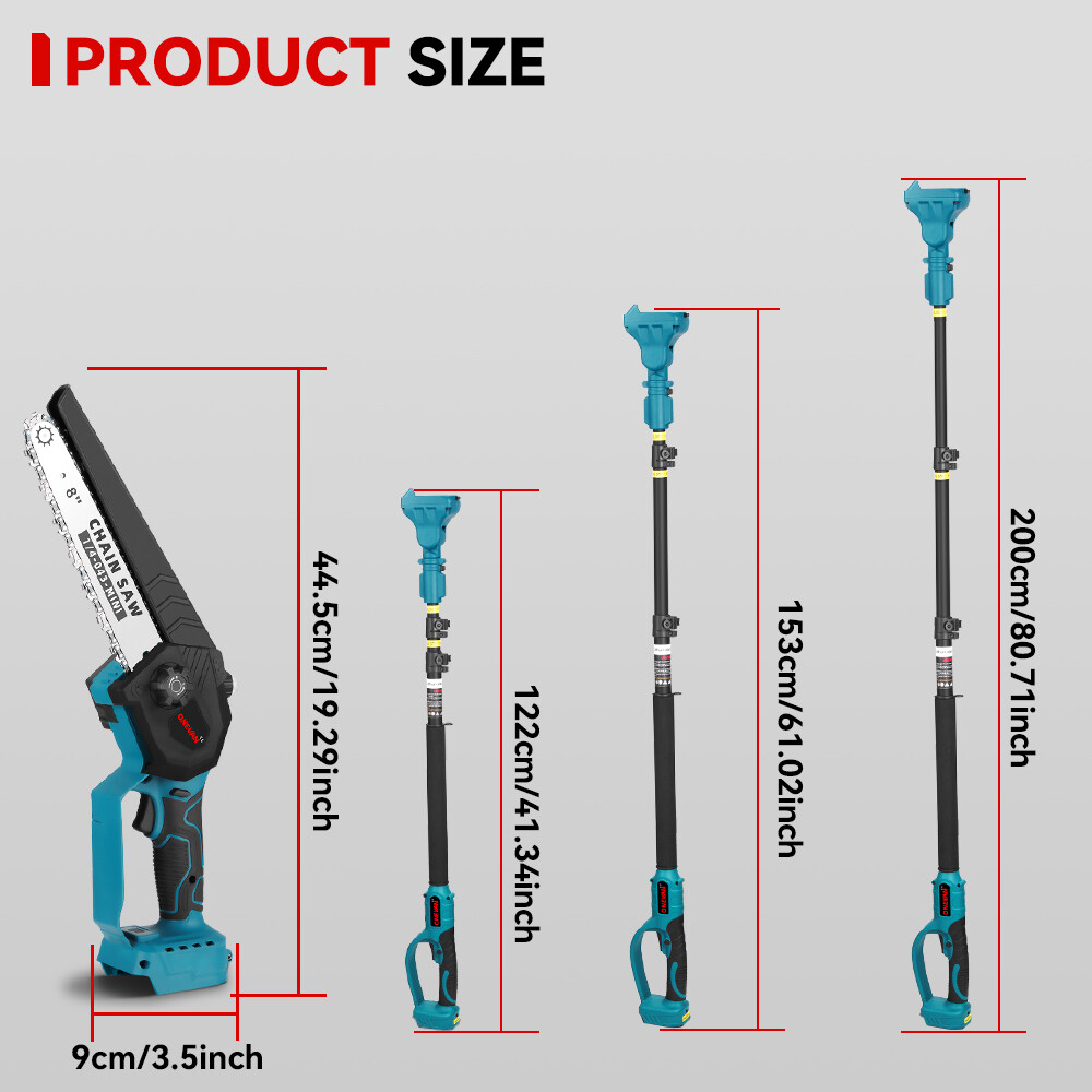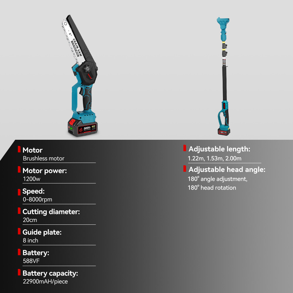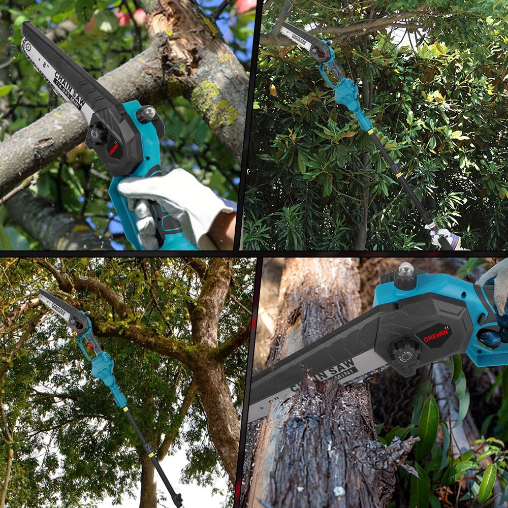 8-inch Brushless Cordless Pole Chainsaw with 2 Batteries - 2-in-1 Mini Design