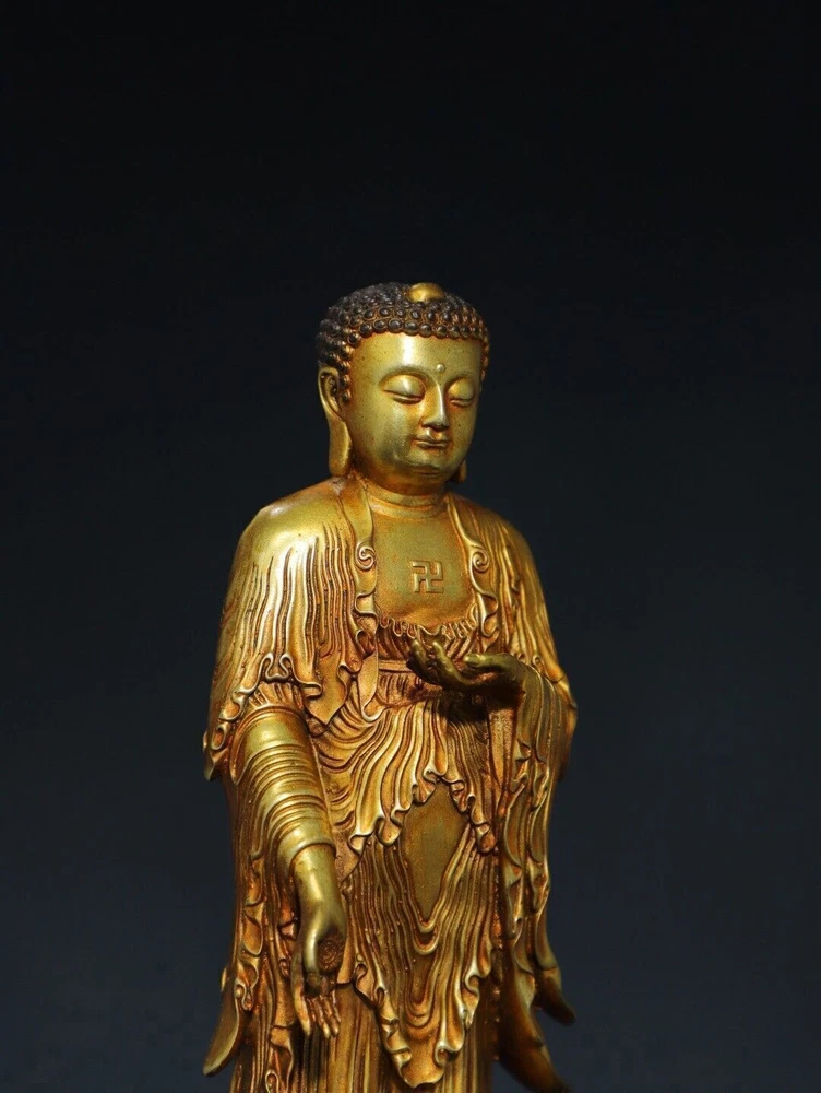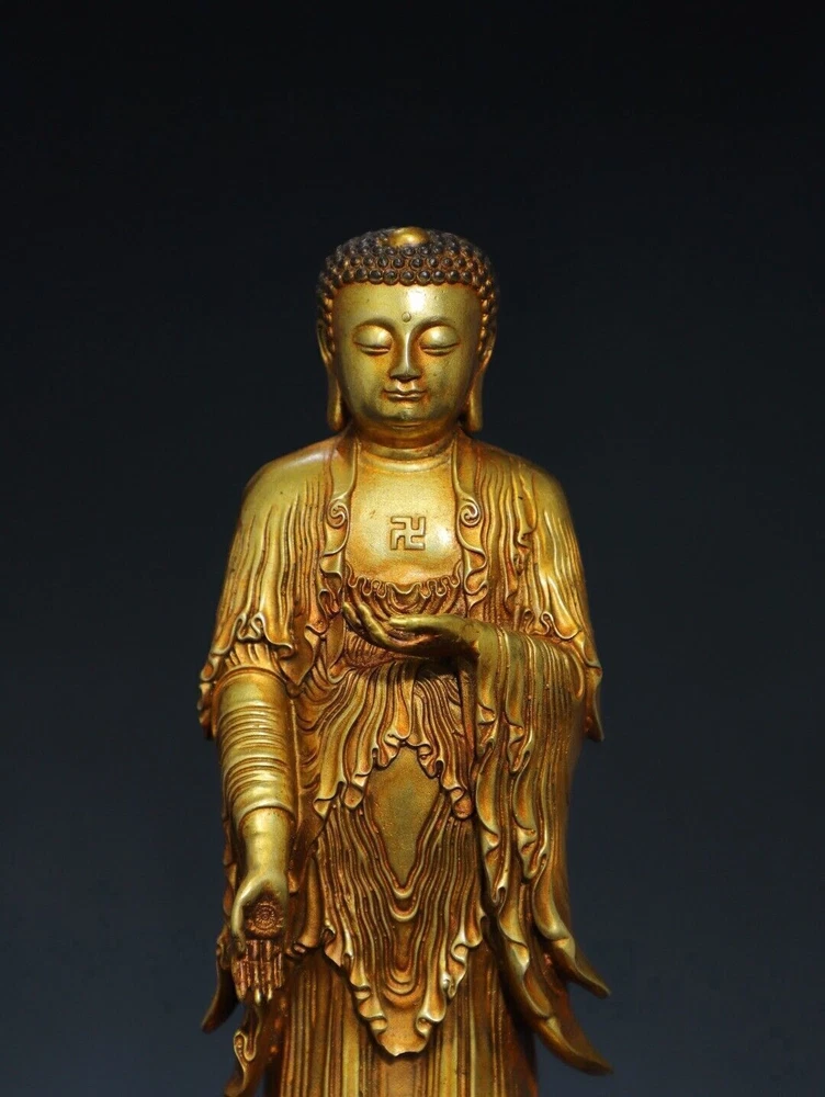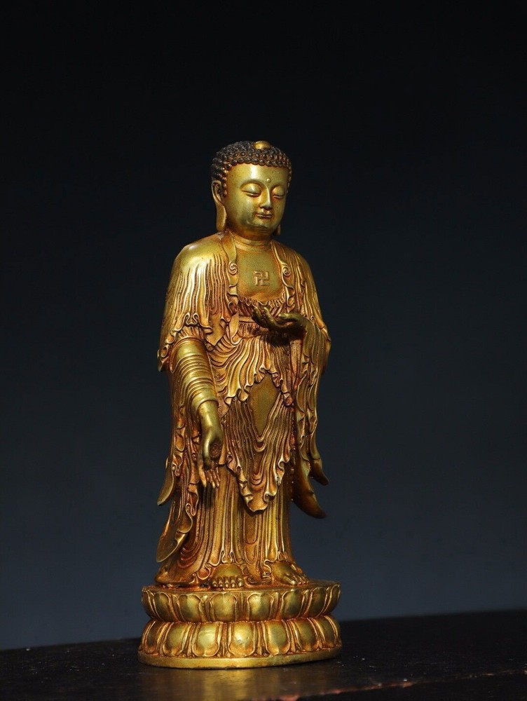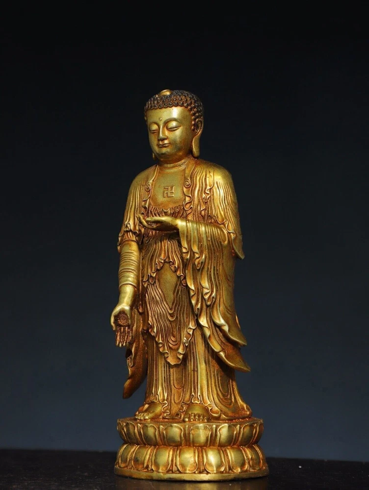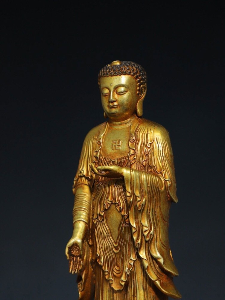 Size: Height: 20cm Wide: 8cm weight:0.88kg Material: bronze gilt NOTE: Withno wood stand!!!! Condition: Good condition Origin: China