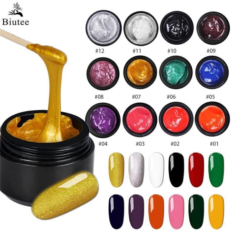 12Color 8ml Stamping Gel Nail Polish Painting UV Led Gel DIY Stamping Image Print Nail Art Design For Manicure Nail Gel Polish Feature: 1.from natural resin, low smell, NON-TOXIC.lets you stop worrying about hurting to your health. 2. Each color will meet with different patterns,it also can improve your DIY skill.Comes packed in exquisite gift box, a perfect gift for her. 3.Need to be cured under LED/UV nail lamp. TIME: Average for LED light 60-90 secs, UV light 2-3mins. 4.Using the stamping polish gel with Biutee nail stamping plate set will do better work to your nail. 5. 12 Pcs with different colors 8ML (Orange,Red,Pink, Purple,Blue,Green,Yello,PalevioletRed,Brown,Black,White,sliver). Specification: Brand: Biutee Quantity: 6/12 Bottle Capacity: Approx. 8ml Color: As the picture shows Package : 6/12 Color kit with box Why Choose Our Gel Polish? 1.It made of healthy, environmental, friendly, no poisonous, pungent chemical materials. 2.It is quick drying with any UV Light. 3.Long lasting for at least 15 days, fantastic and super bright nails for you. 4.This nail gel polish is easy to apply and soak off. 5.Allow you for professional or home nail art design. 6.A professional nail art gift for yourself or your girlfriend. How To Use Our Gel Polish? Step 1. Clean Nails then clip nail surface as normal nail art process. Step 2. Fully shake up the gel polish, it can make the gel polish color balanced. (Important) Step 3. Apply Base Gel first,which can make gel polish lasting longer, cure with UV lamp or LED lamp. (Necessary) Step 4. Apply first layer of color uv led gel directly, cure with UV lamp for 2 minutes or cure with LED lamp for 60 seconds. Step 5. Apply second layer of color gel and then immediately cure with UV lamp for 2 minutes or cure with LED lamp for 60 seconds. Step 6. Coat with no wipe gel top coat,cured by UV lamp or LED lamp. Gentle Tips: Avoid all skin contact. If redness or other signs of adverse reaction occur, discontinue use immediately.