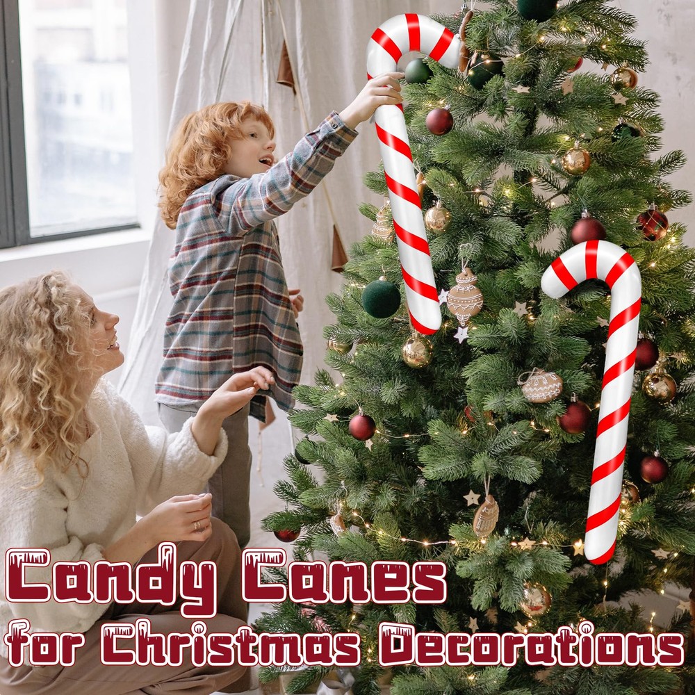 【Value Package】You will get 8 pcs inflatable Christmas candy cane,each of them are 35 inch after inflated.Suitable for indoor and outdoor decorations.Cheer up your house! 【High Quality】The inflatable Christmas cane utilized with thickened PVC material.Lightweight and waterproof.It can be used many times.Close the transparent lid after inflation,not easy to deflate,does not affect the aesthetics. 【Practical Design】The candy cane shape in red and white,which is classic Christmas color.It is lightweight enough to hang on walls,windows,or curtains if need be.You can lean it up in a corner or hook it over a stair rail.can play without worrying about getting hurt! 【Easy to Use】Candy cane inflatables can be inflated by mouth air or hand pump.When you don't use it, open the vent hole and deflate it,fold and it without taking up space,and continue to use it next year. 【Widely Application】They are the good party decor favors.Also a ideal to be used for a Santa scene set up.You can give your friends and families as gifts,and they will be very pleased to get these Christmas ambiance decoration.