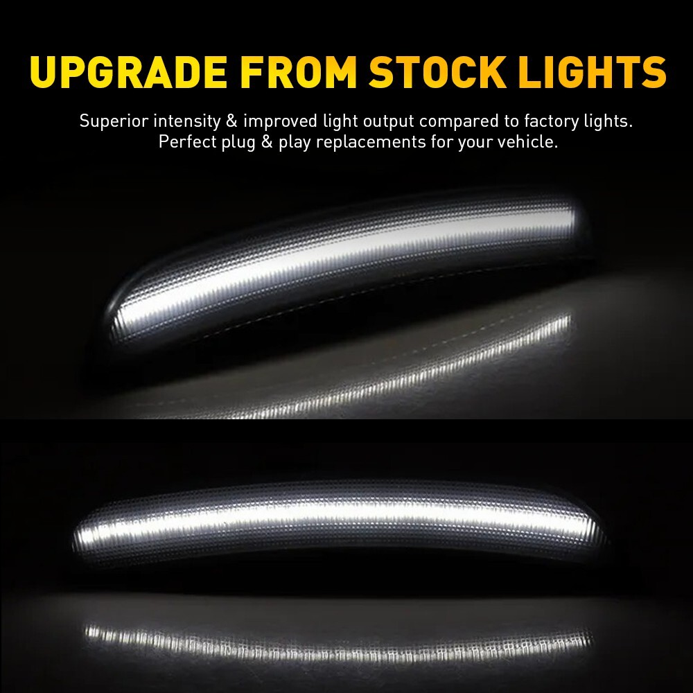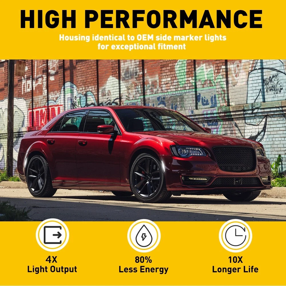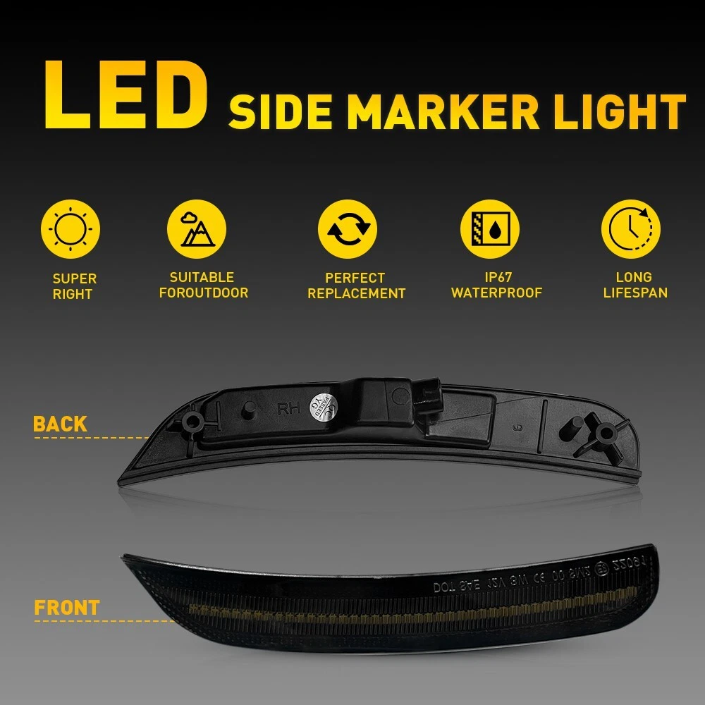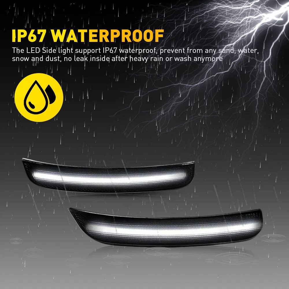 These smoked LED side marker lights are a perfect upgrade for the Chrysler 300! The 1:1 fitment ensures easy installation with no modifications needed, and the smoked lens adds a sleek, modern look. Bright white LEDs provide excellent visibility for safety, while the IP67 waterproof rating means they’ll last through any weather. At 50,000+ hours, these lights are built to last, and the premium quality makes them worth every penny. Highly recommend for anyone looking to upgrade their 300’s style and functionality!