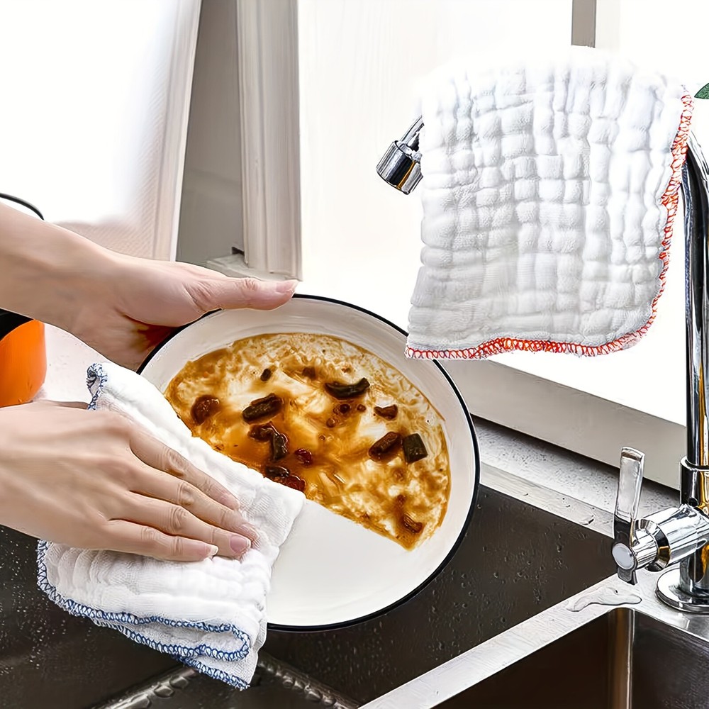 These dishcloths are crafted from a blend of 90% cotton and 10% yarn, ensuring they are free from harmful chemicals and synthetic materials. They offer a soft and comfortable feel, are highly durable, and become even softer with each wash. As a result, these dish towels are gentle on delicate cookware, plates, and pans. The collection comprises 8 solid color cotton dishcloths, available in v arious colors to complement any kitchen decor.