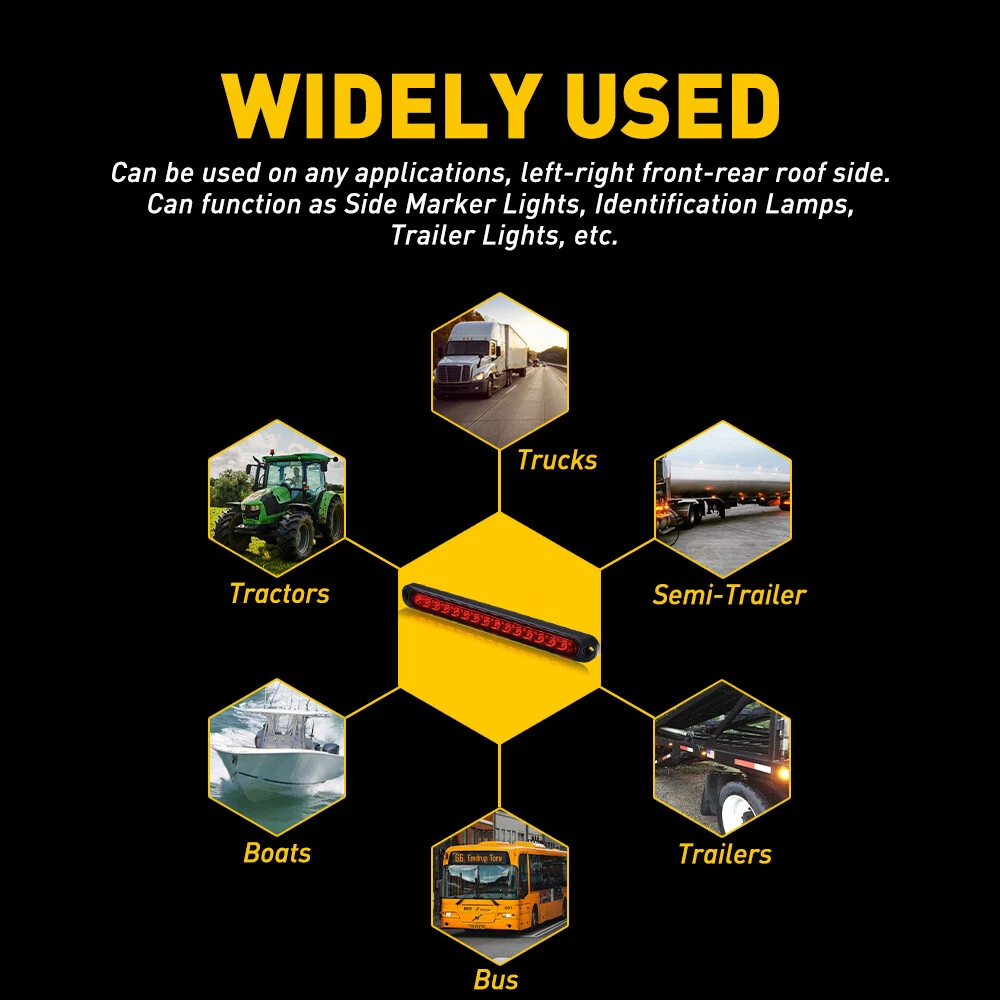 Brand: Unbranded Lighting Type: Trailer Lights Fitment Type: Trailer Boat clearance lighting Applications 2: Cab Rails ORV Golf Cart Freightliner Voltage: 10V-30V Lighting Technology: LED OE/OEM Part Number: AUXITOLED Suitable For: Brake Light, Daytime Running Light, Side Marker Light, Tail Light, Third Brake Light, Turn Signal Light Applications 5: camper trailer, cargo trailer Manufacturer Warranty: Lifetime Model: DRL Stop Brake Tail Light Rear Turn Light Bar Light Color: Cold White/Red Bulb Fitment Code: C5W Material: ABS Housing, PC Lens LED Type: 15 pcs super bright White/Red LED Waterproof level: Waterproof IP67 Number of Bulbs: 4 Features: CANbus Compatible UPC: Does not apply To Fit: Turn tail reverse marker Clearance Lamp Manufacturer Part Number: For Pickup,truck trailer,boat,Lorry,Van,caravan gtin13: Does not apply Applications 4: travel trailer, boat trailer, horse trailer Type: Rear Tail Lights/ Reverse Lights LED quantity: 15LED Interchange Part Number: Universal For Any 12V Vehicles Heavy trucks Applications: Truck Trailer RV Light Bar Tow Boad Applications 3: Bus semi-trailer motorhome tractors Dump Truck Position: Reverse Lights; Backup Lights; Fog Driving Lights Placement on Vehicle: Rear