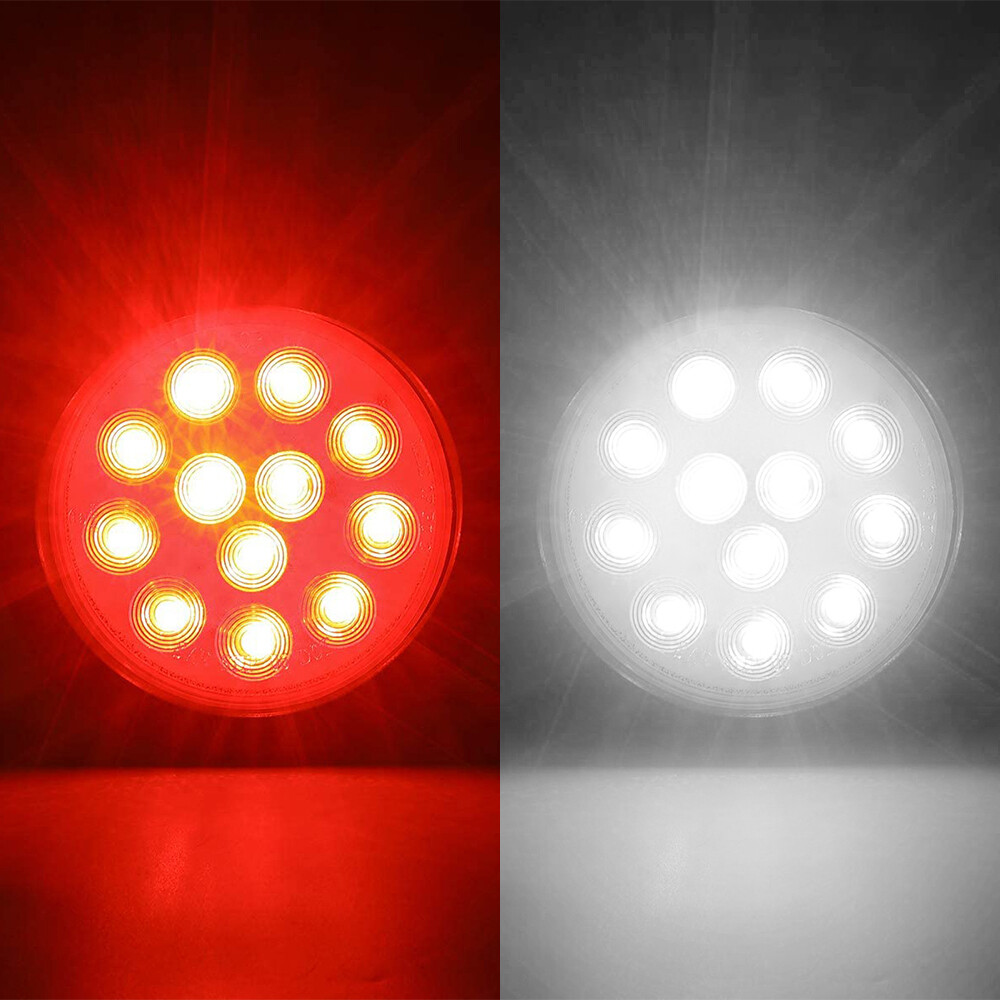 8x 4" Red White 12 LED Round Tail Rear Stop Brake Lights 12V Truck Trailer Lamps