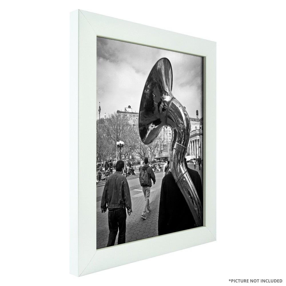 Contemporary style; white; smooth wrap finish Each frame includes: glass, rigid black backing and pre-attached stamped hanging hardware Each frame holds a 8 inch by 10 inch photo/print Frame moulding is 1 inch wide; wood composite material Frame is designed for WALL HANGING only (hanging hardware allows for portrait or landscape orientation)