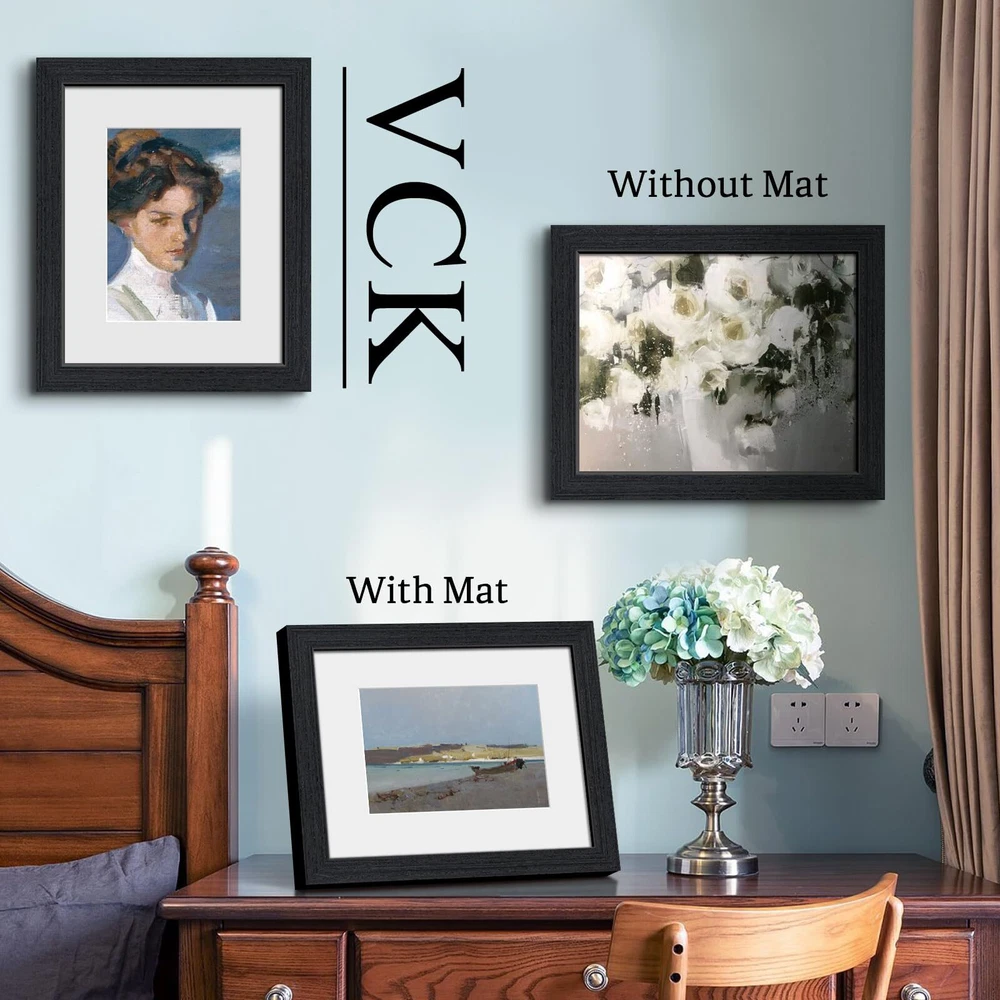 Award-Winning Design: Immerse yourself in the timeless elegance of Pennsylvania oak grain, masterfully reimagined in black by our independent designers team at . This tribute to classic craftsmanship fits seamlessly into any décor and brings a touch of sophistication to your life. FSC PREMIUM WOOD: Embrace the commitment of to sustainability and uncompromising quality. Our robust, long-lasting frames, echo our pledge to nature. Enhanced corners and backboards make sure your cherished moments are beautifully encased for eternity. PRODUCT FEATURES: Our versatile frame is perfect for displaying 8x10 without mat or 5x7 with mat photos. With the innovative design, you can effortlessly load your pictures and choose between horizontal or vertical display. Optimal View: Enjoy a new visual experience with our shatterproof HD tempered glass. Offering unparalleled UV ray protection and glare resistance, it's a safe and perfect choice for homes with children. Satisfied, or money back: At , we prioritize your satisfaction and strive for excellence in our product experience. We pack our frames securely to ensure a pristine condition upon arrival.