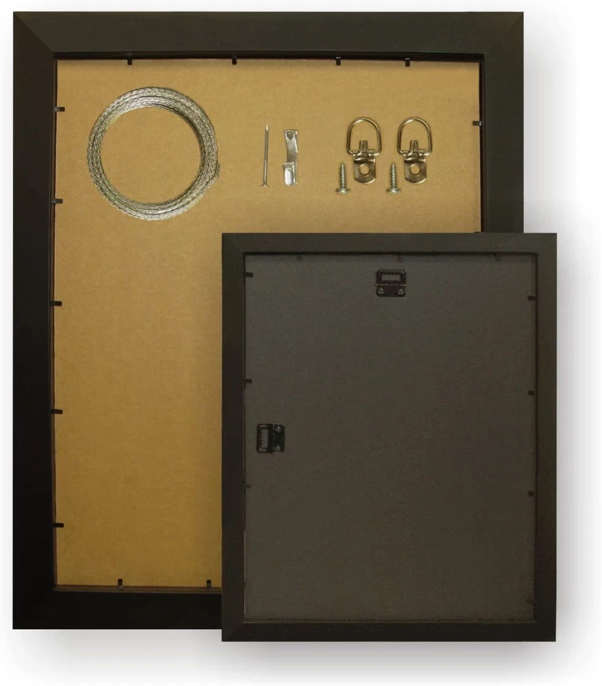 Contemporary style; black with smooth finish Frame includes: glass, rigid black backing and pre-attached stamped hanging hardware Frame holds a 8 inch by 10 inch photo/print (viewable area is slightly smaller) Frame moulding is 2 inches wide; wood composite material Made in the U.S.A. Product Description Craig Frames American-made & Trusted for Over 30 years Craig Frames offers hundreds of styles and sizes. Our products include picture frames, poster frames, photo frames, collage frames, document frames, framed maps, matting, bulletin boards, & more. A Trusted Brand & US Manufacturer Offering a Vast Selection of High Quality Home Décor Products Enjoy a vast selection of highly rated, affordable, professional quality picture frames and poster frames for wall hanging or table top use. Craig Frames also offers 2-Packs & 4-Packs for gallery wall sets, large art projects, or wholesale purchases. Styles include Modern, Rustic, Farmhouse, Boho (Bohemian), Ornate, Metallic, Weathered & Distressed, and more. Most frames are available in 30+ popular sizes, and many are available in 500+ custom frame sizes. With more than 45,000 Seller Ratings, thousands of customers continue to enjoy our American-made picture frames for their home décor projects. Living room, bathroom, kitchen, bedroom, nursery, or office; we're confident you'll find the perfect style and size for your decorative project or business needs. Visiting our Brand Store provides a simple, well organized, way to discover framing solutions for every project or occasion. (Click 'Visit the Craig Frames Store' above) Exceptional Value, Selection, Quality, and Service Styles Available Modern, Farmhouse, Contemporary, Rustic, Boho, Antique, Ornate, Weathered, Distressed, Metallic, Natural, & More Sizes Available Most frames are available in 30 or more popular picture frame sizes. 500+ custom frame sizes available in some styles.. Occasions Birthday, Mother's Day, Father's Day, Christmas, Graduation, Baby Shower, Home Renovation, Off to School, & More. Quality American-made in Michigan by professional framers with materials sourced primarily in the USA. Reputation More than 45,000 seller reviews supporting our quality craftmanship and service. Service US based support team providing real-time service & solutions What Customers are Saying "Excellent service, safe packaging." "Actually arrived ahead of estimated delivery date" "Perfect frames for my antique posters! Very nice." "Amazing, better than I had envisioned." "Well packaged and arrived on time in perfect condition" "Sturdy, very well made frames." "Thank you for sending this so fast! It is just what I wanted."