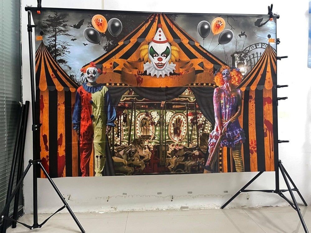 This 8x6ft Horror Circus Tent Carousel Backdrop is perfect for adding a touch of creativity and spookiness to your Halloween decor. The multicolor design and circus theme make it a unique and eye-catching addition to your party decorations. This wall hanging is sure to be a fun and entertaining backdrop for your Halloween festivities in 2024.