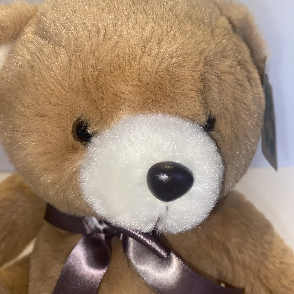 The Petting Zoo Plush Stuffie 9" Brown Bear Soft Cuddly Satin Bow NEW With Tag