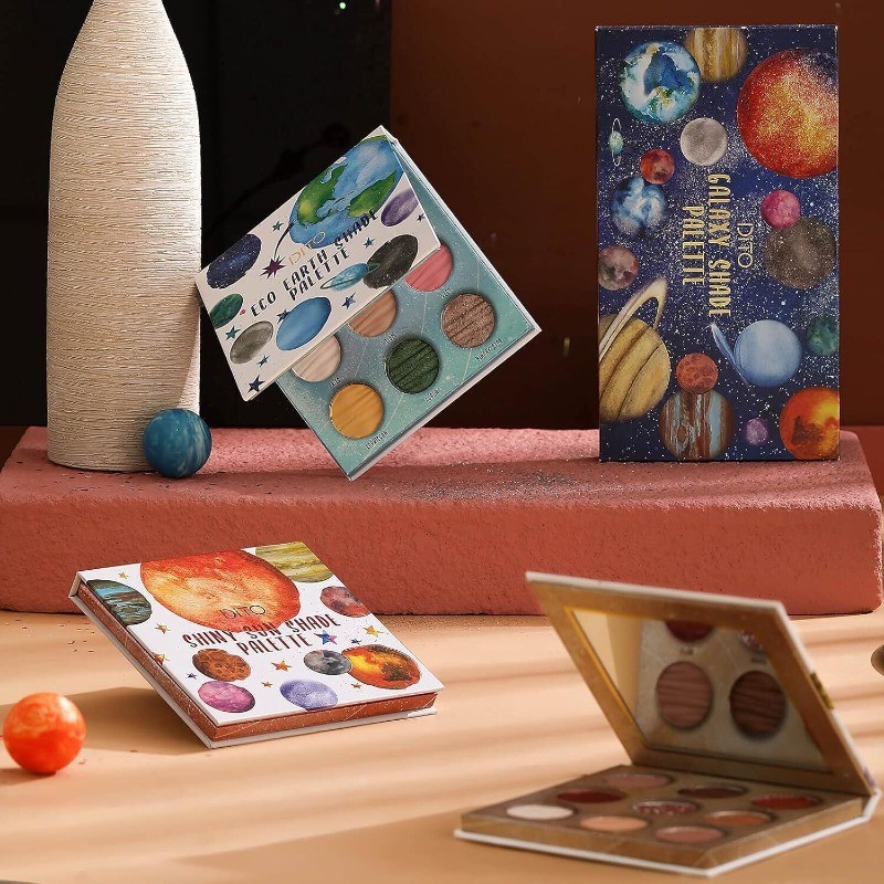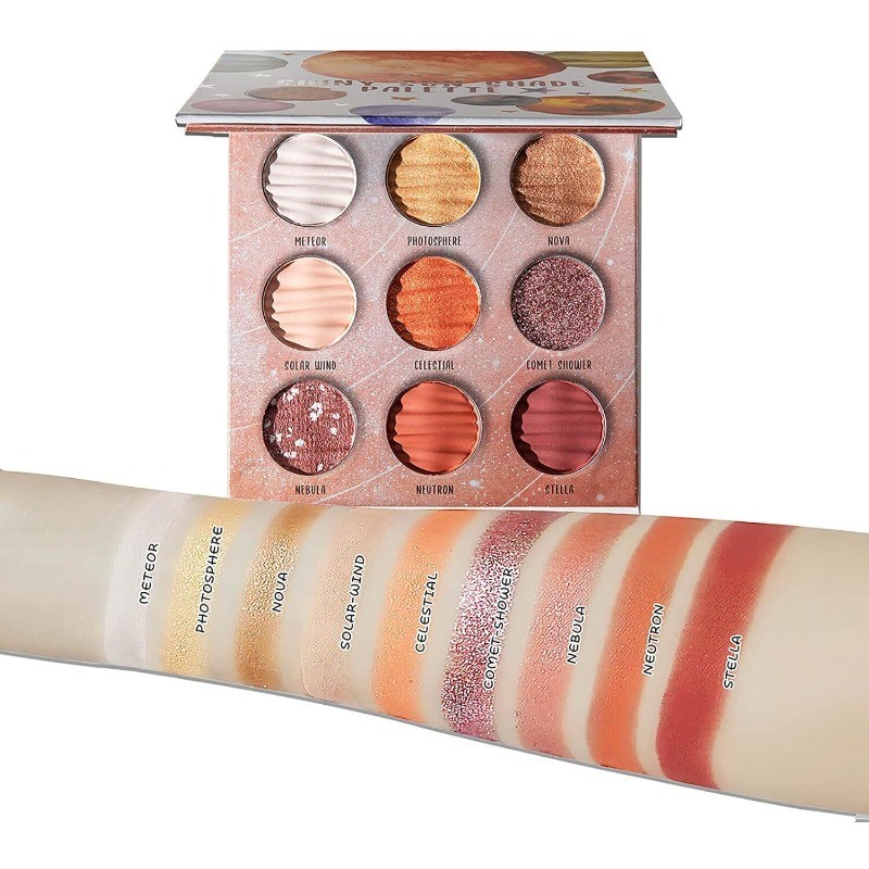 【9 COLOR, MATTE & SHIMMER & GLITTER】 eyeshadow palette Inspired by the sun planets to design. The velvety nude-to-deep shimmers can be layered, blended to create a full spectrum of brilliant, long-wearing looks 【DEEP PIGMENT】The pigments of eyeshadow palette are intense. Just barely touch a little and will sticks well to your primer. Add dazzling dimension to you using the sunlit 【LASTS UP TO 24 HOURS】The variety of matte to glitter warm-toned cosmic colors is spot on this eyeshadow pallet. You can try different charming eye makeup look from everyday neutrals to vibrant hues. Even the glitter has stayed on all day 【HIGH-END PACKAGING & EASY TO TAKE】 eyeshadow palette is made of planet pattern and high quality white box. So beautiful from the packaging to the shades. Also makeup palette is easily carry wherever you go 【EASILY WASH OFF, PERFECT GIFT FOR LOVER】 eyeshadow powder is easy to clean up with a make up wipe and remover. With the light to dark range of 9 colors, dra maticy or natural makeup is definitely achievable. eyeshadow palette is the perfect gift for who loves colorful makeup. 9 COLOR SHINY SUN SHADE PALETTE ① A Variety Of Warm Color: perfect for daily makeup look and party makeup look, suitable for all occasions ② Blendable Texture:ultimate pigment,easy to apply, from naturally beautiful eye look to warm toned smokey eye look ③ Skin-Friendly: safety formula for all skin tone and sensitive skin,would not irritate your skin ④ Cruelty Free& Long Lasting: not test on animals. Waterproof and Sweat-proof, keep long lasting stay on all day to make you a perfect makeup, no flying powder ⑤ Tip: Using a eye primer and soft brush, that intensifies color and long-lasting eye makeup