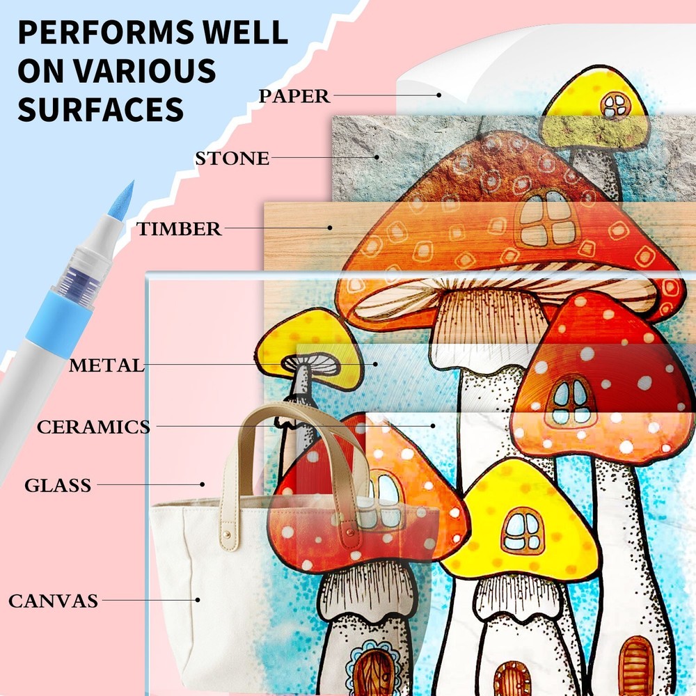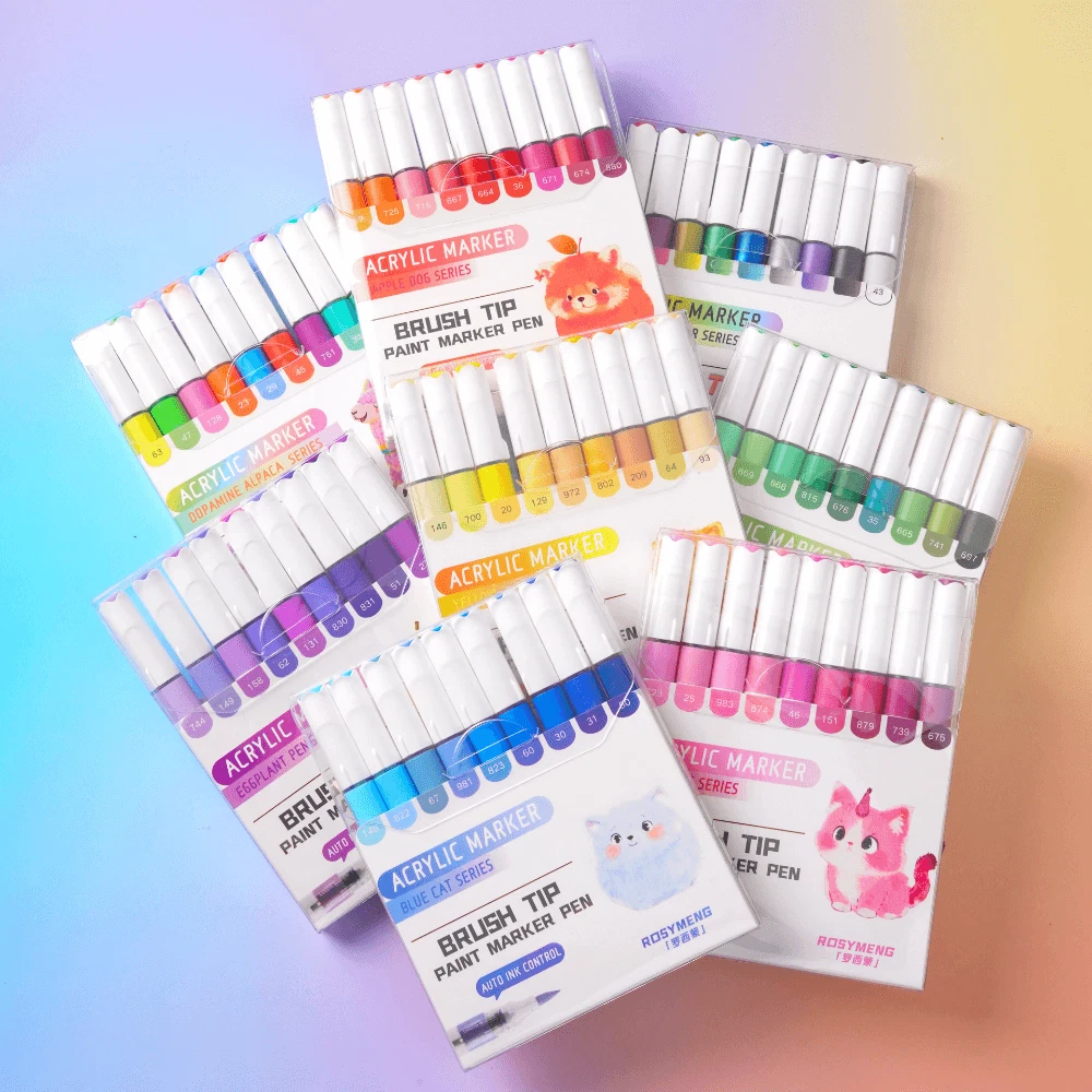 ROSYMENG acrylic paint pens set offer a selection of 9/126 rich and colorful options. Each paint markers are designed with unique and vibrant colors that cater to all your creative need. A variety of colors allows you to let your imagination run wild and have unlimited creative possibilities. Ideal for both beginners and professional artists looking to enhance their designs. These paint pens with soft brush tip feature a smooth application and strong coverage and water-resistant once dry which can make you enjoy uninterrupted creativity. Our 9-color acrylic paint markers feature long-lasting, fast-drying ink that won’t smudge or fade over time and this acrylic markers are made from non-toxic, eco-friendly materials, making them meet safety standards and are easy to handle for all skill levels. Our paint pens and paint markers are perfect for various surfaces, including paper, rocks, wood, glass, canvas, and more. Whether you’re working on a DIY home decor project or creating custom gifts, these paint markers for wood deliver bright, bold color on every surface which can let your imagination run wildly Each acrylic markers paint pens caps matches the ink color, with corresponding numbers for easy identification. The included color chart making it easy for you to choose exactly the right color every time. Looking for a thoughtful holiday presents? Whether it's Birthdays, Easter, Christmas, Halloween, Valentine's Day, Thanksgiving, or any other special occasion worth celebrating, our acrylic paint pens and acrylic paint markers with exquisite packaging making them ideal for parents and grandparents of children.