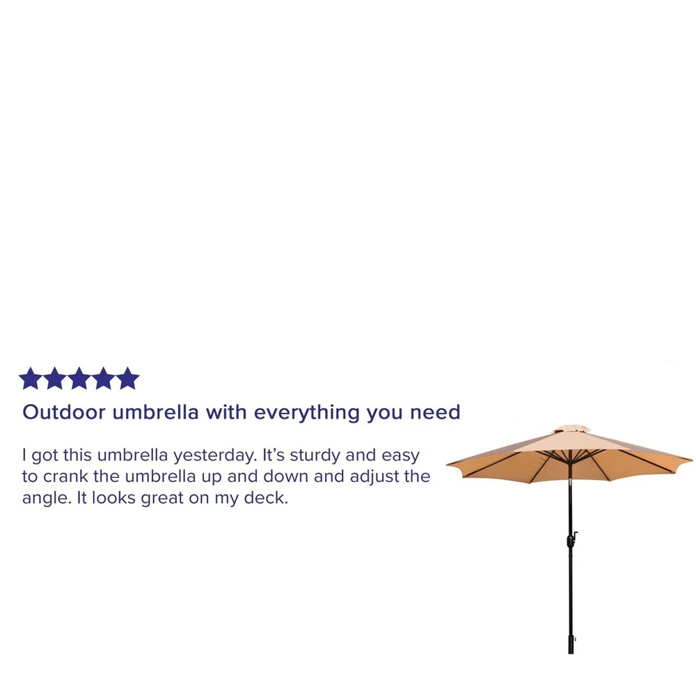 ⭐⭐⭐⭐⭐ Authentic , New , Sealed in Original Packaging Or Your Money Back I’d like to kindly clarify regarding recent U.S. customs changes: Although my eBay location shows outside the U.S., your order is shipped directly from within the United States (via FedEx/USPS/UPS). And because it ships domestically, it will arrive much faster — typically within 3–6 days from the purchase date, not as long as the estimated timeframe shown by eBay’s system. So please rest assured, the delivery time will be quick and smooth. Additionally: Your item ships from our U.S. warehouse, with no import duties or extra customs fees for U.S. buyers. ✅ This is considered domestic shipping. ✅ There are no import duties or customs fees for you to pay. ✅ You will only pay the total shown at checkout — nothing extra on delivery. ✅ You will NOT be charged any additional taxes or fees beyond what you already paid on eBay. If you have any other questions, I’m always here to help 😊 We offer free shipping on all orders. With suppliers based in the US, you can expect to receive your items within 1–5 days. We provide a 30-day money-back guarantee, Excellent customer support, and a 100% satisfaction guarantee. 9 FT Outdoor Patio Round Umbrella Aluminum Pole Crank and Tilt Function – TAN Color: TAN FREE SHIPPING Everything is new, sealed box! You will receive an unopened box! All of our items are new stock. It is 2026 version. We always guarantee our product quality or your money back! 📝 Description Create the perfect shaded outdoor space with this 9 FT Outdoor Patio Round Umbrella featuring a durable aluminum pole and convenient crank-and-tilt functionality. Designed for patios, decks, gardens, poolside areas, and outdoor dining sets, this umbrella combines classic style with dependable performance. The 1.5" diameter aluminum pole includes a smooth hand crank system for effortless opening and closing. The adjustable tilt function allows you to block the sun from multiple angles throughout the day. The canopy is crafted from 100% UV-resistant polyester, helping protect against sun exposure while maintaining vibrant color. Built for durability and everyday use, this umbrella offers weather resistance, easy assembly, and reliable stability for both residential and commercial outdoor settings. ⭐ Key Features • 9 FT round canopy for wide shade coverage • Durable 1.5" aluminum pole with powder-coated finish • Easy crank open/close system • Adjustable tilt function with tilt lock • 100% UV-resistant polyester canopy • Weather resistant & outdoor rated • Two-piece pole design for easy storage 📊 Product Specifications Size: 9 FT Round Color: Tan Shape: Octagon Pole Diameter: 1.5" Pole Material: Aluminum Frame Color: Black Materials: Steel, Polyester, Plastic, Aluminum Height: 96.5" Adjustable: Yes Tilt Lock: Yes Folding: Yes Weather Resistant: Yes Suitable for Outdoor Use: Yes Anti-Microbial: Yes Rated for Commercial Use: Yes Assembly Required: Yes Assembly Level: Easy (1–10 Minutes) Warranty: 3 Year Limited 🚚 Shipping Information Item will be shipped within 1–4 business days after payment is completed. (Not including weekends and holidays.) Delivery typically takes about 1 week depending on location. We use trusted shipping services such as UPS, FedEx, and USPS. FREE SHIPPING FREE 30-DAY RETURNS Returns are accepted for any reason. We value our customers and strive to provide 5-star service. If you experience any issue, please contact us before leaving negative feedback or opening a case. We are committed to resolving concerns quickly and professionally. Thank You For Your Business ⭐⭐⭐⭐⭐