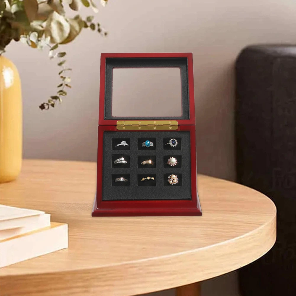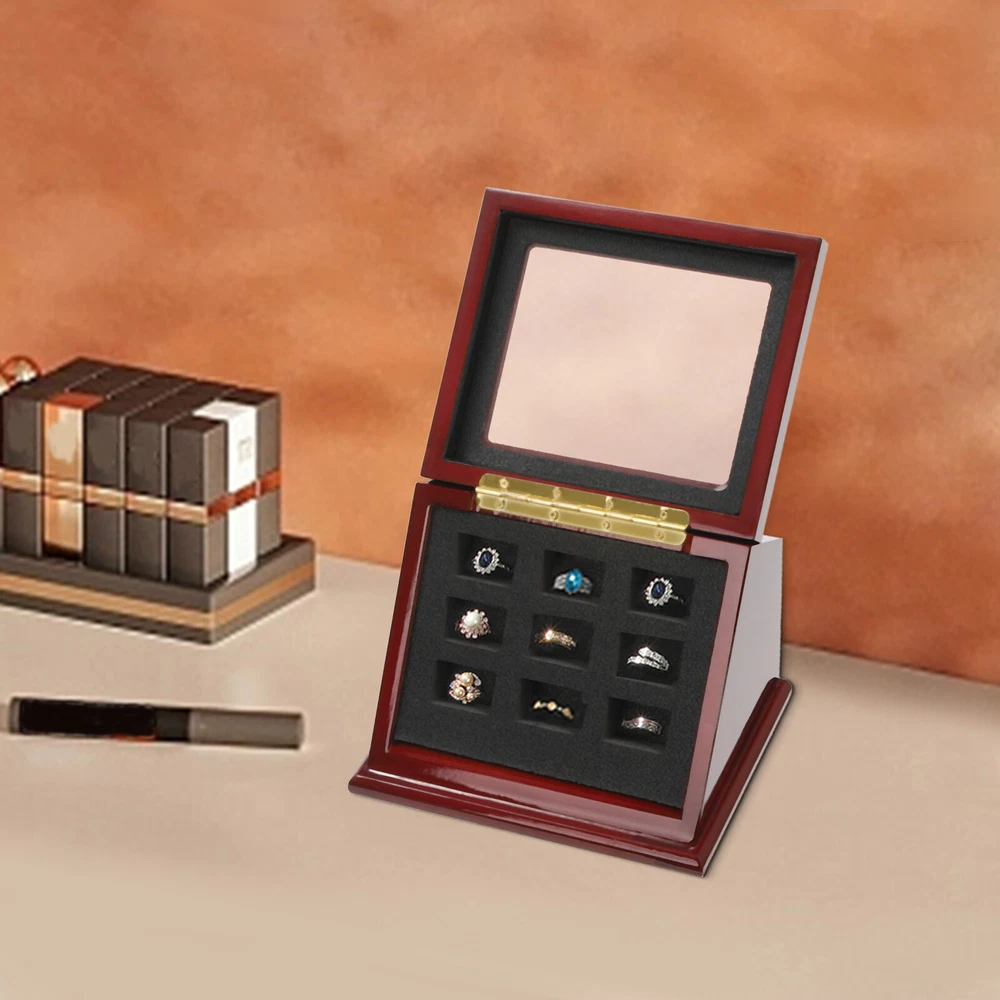 9 Holes Ring Organizer Box Elegant Slanted Ring Display Case Wood Stand Holder