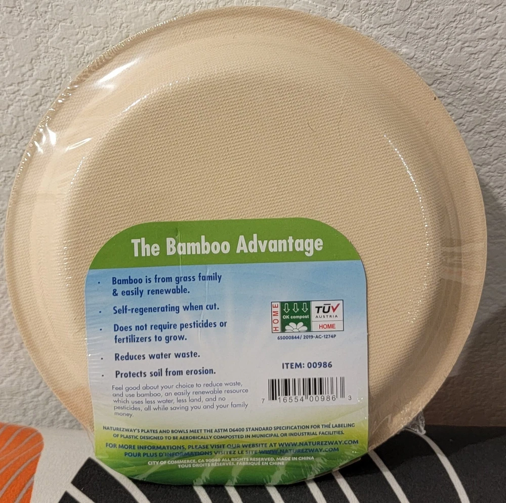 This set of 20 disposable plates is perfect for any occasion. The plates are made of bamboo and sugarcane, making them heavy-duty and durable. They come in a solid beige color and are perfect for serving a variety of foods, including pizza, sushi, and salads. The plates are designed with a round shape and are perfect for serving as a snack, side dish, or dessert. They are also great for use in picnics, tailgates, or any other outdoor event. With their unique design and high-quality material, these plates are sure to impress your guests. 9 inch plates 20in each pack total 28 packs available