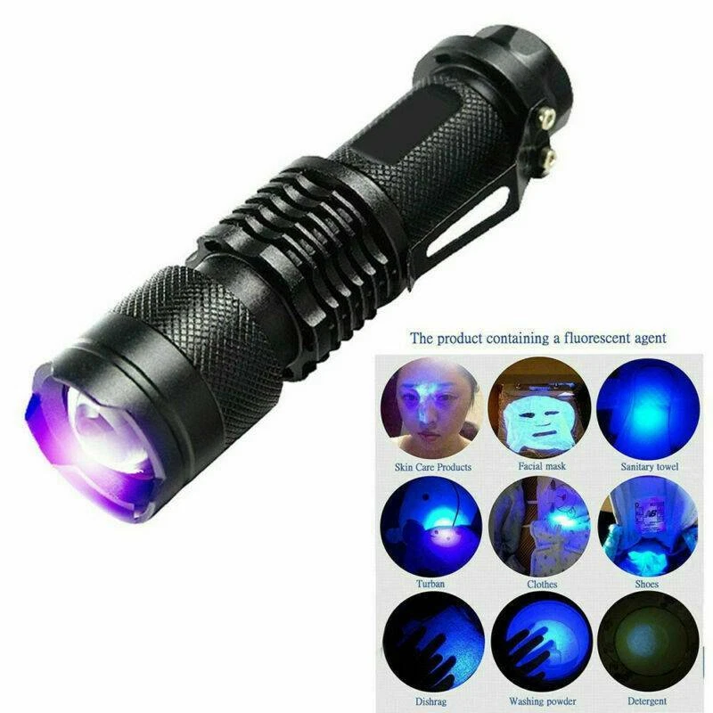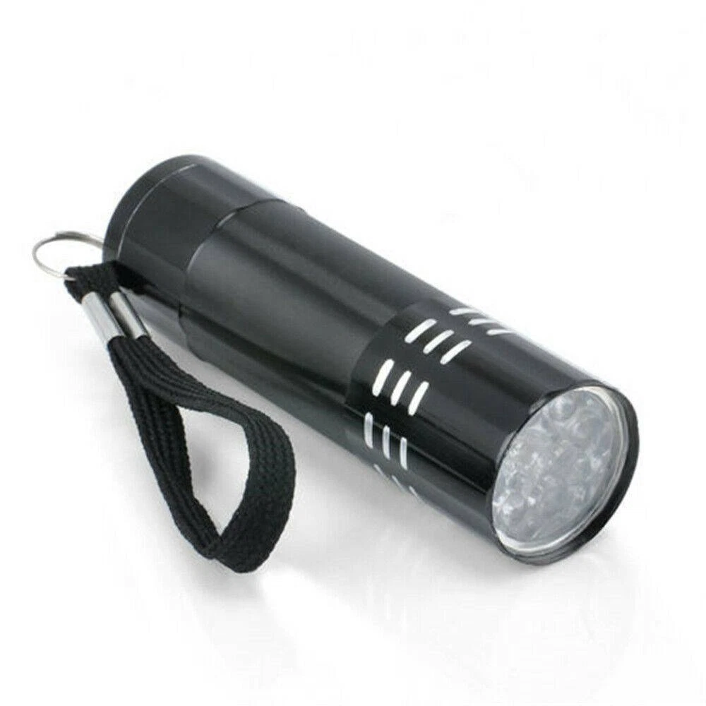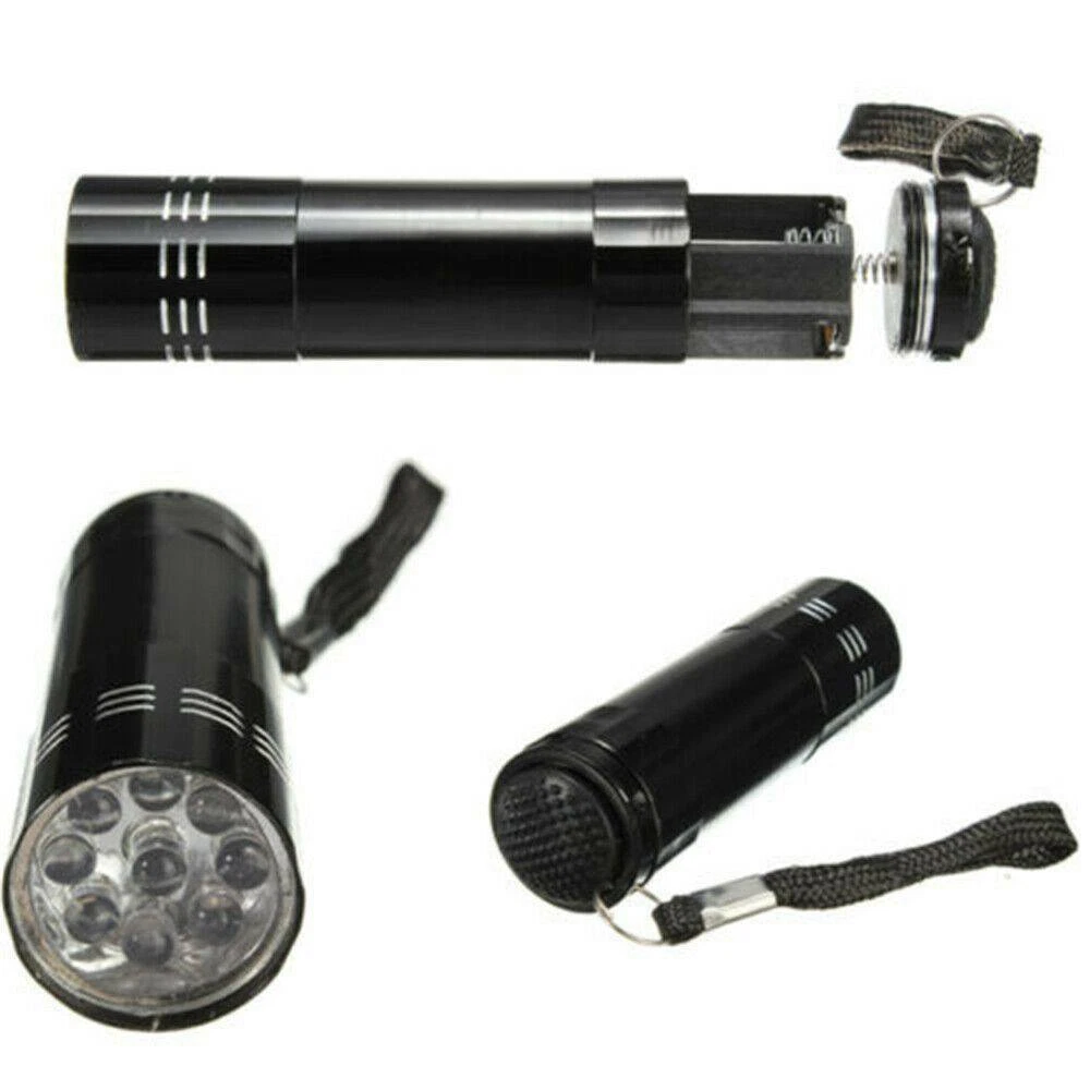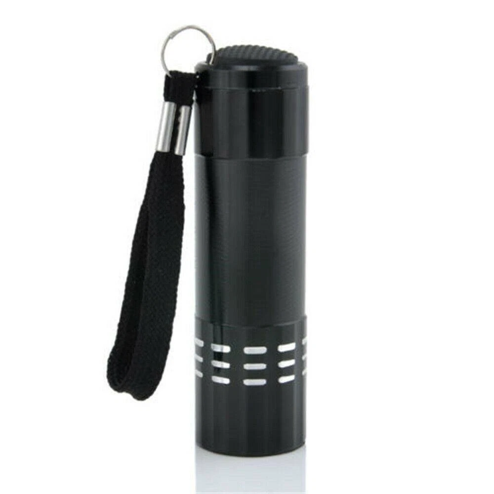 9 LED UV Torch Ultra Violet Flashlight Blacklight Lamp Camping Money Checker USA Description: Feature: Condition: Brand New Flashlight Color: Black Light color: Purple Material: Aluminum Size: 8 * 2.3cm Light bulb type: UV Light Note: Blacklight Flashlight=Ultra Violet Flashlight Switch type: Both Press on and press off type You need 3 x AAA Alkaline batteries in order to open the lamp (not included) Feature: 9 LEDs UV Light, energy conservation, ultra bright, Lighting for a long distance The strong and lightweight aluminum case made for the Flashlight So light for the weight of the lamp that you can compact and easy to carry Can be used on rainy days, because of the water resistance design Great for checking notes, credit cards, fluorescence inks (invisible inks), cracked glassware, or even crime scene, ect Weight: 27 g Package Includes: 1 X Flashlight Note: 1. Some pictures look bigger, please refer to the exact item size. 2. Please note that due to lighting effects, monitor's brightness and contrast settings, the color of the products may vary slightly between our photos and the item actually received. 3. We thank you for your understanding.