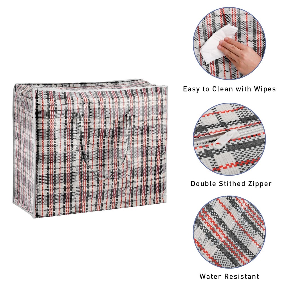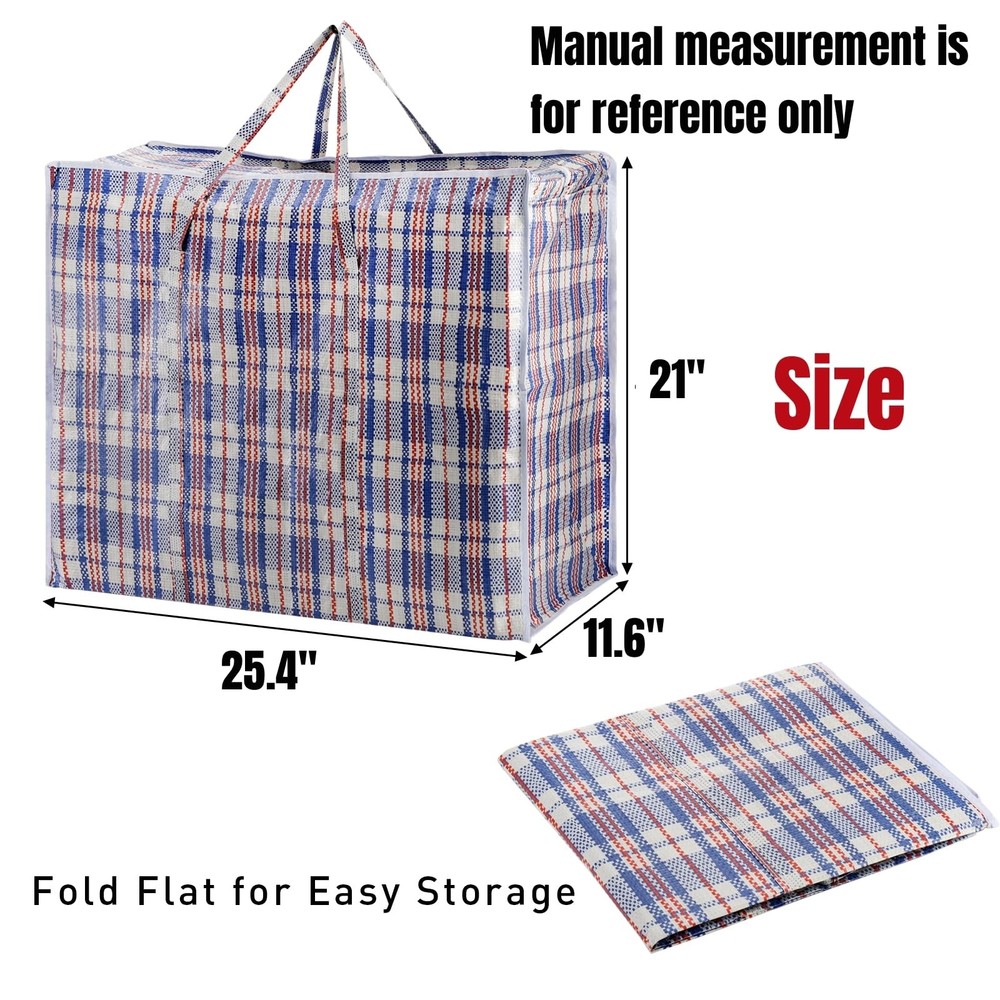 9 pack heavy duty moving storage bags with dimensions 25.4" L x 21"H x 11.6"W. Our large checkered travel bag are made of durable polypropylene plastic with reinforced handles. It is built to last and has a certain degree of waterproof performance. Its load-bearing performance is also excellent, with each bag capable of withstanding up to 44 pounds of weight. These dorm storage tote bags are perfect for the four seasons clothing, big plush toys, various types of shoes, bedding supplies, laundry stuff and so on. An ideal bag for travelling, moving house or camping. 9 pack heavy duty moving storage bags with dimensions 25.4" L x 21"H x 11.6"W. Extra large size, one bag that can contains much more than normal size bags. Save your trouble to carry a lot of bags and make it easier to find things. Premium Quality: Our large checkered travel bag are made of durable polypropylene plastic with reinforced handles. It is built to last and has a certain degree of waterproof performance. Its load-bearing performance is also excellent, with each bag capable of withstanding up to 44 pounds of weight. Better than Moving Boxes: These moving bag provide lightweight while maintaining good strength, and the handle is easy and comfortable to grip.They can replace those heavy moving box to ease your moving burden. Also it will be much economic than a bunch of moving box. Chic Design and Saving Your Space: These packing supply bags are designed in vintage checkered pattern, very stylish. This product can be folded compactly, you could put in a storage box, large drawer, closet, the trunk of the car or any other luggage after used without taking up too much space. Wide-Application: These dorm storage tote bags are perfect for the four seasons clothing, big plush toys, various types of shoes, bedding supplies, laundry stuff and so on. An ideal bag for travelling, moving house or camping. In addition, it is easy to clean with wipes! It provides convenience for you to reuse it.