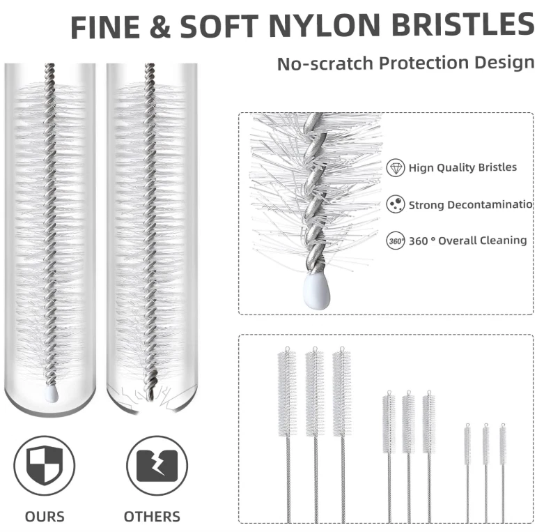 9 Pack (3-Size) Drinking Straw Cleaning Brushes Set Extra Long Pipe Tube Cleaner MULTIPLE SIZE – With this set of 9 straws you will get a straw with a diameter of 6 mm, 9 mm and 12 mm, and nylon bristle length of 8 inches, 10 inches and 12 inches. Great for clean your straws on Tumbler, Sippy Cup, Baby Bottles, Tervis, CamelBak, Hydroflasks, Yeti, Starbucks Cup and others. EASY TO USE – Simply insert it into the pipe, rotate it, remove and wash it. With the long, soft but durable bristles, it can be used to clean each size of pipe you have and does not scratch the inside of straws. Moreover, it doesn’t leave a lot of fuzz behind in the pipe like pipe cleaners do which you need to take the trouble to get rid of it. DURABILITY & MULTIFUNCTIONAL – Use our durable straw brush that is very flexible but will not break easily which is much stronger than some inferior and fragile straw brushes. Meanwhile, this brush also can be used to clean Pipe, Narrow Tube, Hookah, Coffee Pot, Sink Drain, Hummingbird Feeder, Weed Smoking Bong and other hard to access corners. HOW IT’S MADE – These straw cleaning brushes are made of food grade stainless steel, while bringing you durability and versatility. The bristles are made of nylon which is both resistant, and easy to clean. Get around any surface or maneuver any depth. DISHWASHER SAFE – These pipe cleaners are easy to clean after use since they can easily throw it in the top rack of the dishwasher, and this won't affect the brushes' effectiveness and functionality. SHIPPING: We offer FREE shipping on all orders! We ship within Three business days of payment, usually sooner. We use a selection of shipping services such as UPS, FedEx, USPS etc. We only ship to the lower 48 states, no APO/FPO addresses or PO Boxes allowed. Local pickups and combined shipping options are not provided at this time. PAYMENT: We accept payment by any of the following methods: PayPal Please pay as soon as possible after winning an auction, as that will allow us to post your item to you sooner! FEEDBACK: Customer satisfaction is very important to us. If you have any problem with your order, please contact us and we will do our best to make you satisfied. Thank you for shopping with us!