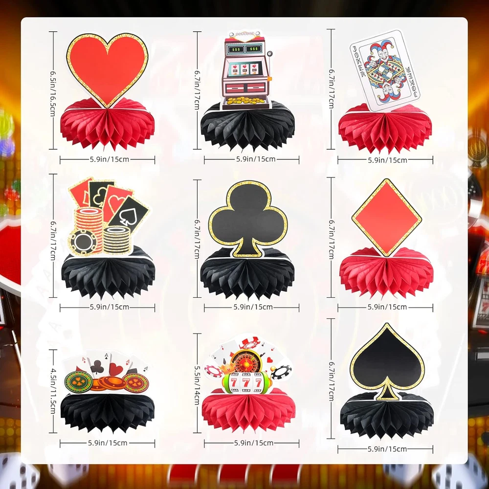 Store New Arrivals Add to Favorite View Feedback Contact 9 Pcs Casino Theme Party Decorations, Honeycomb Table Centerpieces with Poker Cards, Casino Centerpieces for Tables Playing Card Sign Decoration, Las Vegas Casino Night Poker Party Description Item Weight 4.6 ounces Product Dimensions 0.1 x 0.1 x 0.1 inches Manufacturer recommended age 3 years and up Package Include: You will receive 9 pieces of casino themed party table decorations in different patterns and colors and an assembly guide, enough to meet your decorating needs as the perfect supplies for a casino party and give you an unforgettable party memory Casino Theme Design: These casino supplies are mainly designed in classic red and black colors, including playing cards, slot machines, hearts, spades and kings, with clear printing, suitable for you to decorate your casino themed party and make your party more eye-catching High Quality: These casino party table centerpieces are made of high quality cardstock, sturdy, durable, light weight and portable; you can use them as table decorations at your casino night party to create a casino atmosphere and bring you an enjoyable experience Wide Applications: Suitable for Las Vegas theme parties, poker theme parties, casino night parties, casino jackpot celebrations, poker tournament event decorations, magic show parties, card game theme parties. They can also be used as photo props Easy To Assemble: You can assemble the casino center table decorations according to the assembly card, easy and convenient, then put them in your room, table or you can hang them in the appropriate display area with some string and clips to add entertainment atmosphere to your casino themed party Product Description 9 Pieces Las Vegas Party Decorations Casino Themed Centerpieces for Tables Decorations 3D Casino Theme Honeycomb Table Topper You will receive 9 pieces of casino themed party table decorations in different patterns and colors and an assembly guide, enough to meet your decorating needs as the perfect supplies for a casino party and give you an unforgettable party memory. These casino supplies are mainly designed in classic red and black colors, including playing cards, slot machines, hearts, spades and kings, with clear printing, suitable for you to decorate your casino themed party and make your party more eye-catching. Classic Design You will receive 9 pieces of casino themed party table decorations in different patterns and colors and an assembly guide, enough to meet your decorating needs as the perfect supplies for a casino party and give you an unforgettable party memory. Wide Applications Suitable for Las Vegas theme parties, poker theme parties, casino night parties, casino jackpot celebrations, poker tournament event decorations, magic show parties, card game theme parties. They can also be used as photo props. High Quality These casino party table centers are made of high quality cardstock, sturdy, durable, light weight and portable; you can use them as table decorations at your casino night party to create a casino atmosphere and bring you an enjoyable experience. ABOUT US We offer the best prices around on high quality products. Our E-store includes media such as books, movies, music and games while offering electronics, toys, sporting apparel, clothing, tools, general home, garden items and more. SHIPPING We are always working hard to ensure your package arrives as soon as possible. Please understand that some factors like weather, high postal traffic, and the performance of shipping companies are outside of our control. We offer free shipping to the lower 48 states and ship within 2 business days of payment, usually sooner. We do not accept P.O. Boxes. Please provide a physical address. For shipping outside of the continental USA, we only use eBay's Global Shipping Program.The item is shipped to KY and then sent to the rest of the world. International customers are responsible for all duties and taxes. Continue to check out in order to calculate costs for shipping the item to your country. Messages regarding eBay's Global Shipping Program MUST be directed at eBay EXCLUSIVELY. RETURNS We offer a 30-Day Return Policy on items which you are not completely satisfied with. You have the option for a full-refund or an exchange of the item. No returns are available on items shipped outside of the USA. PAYMENT We accept PayPal. CONTACT US This page content is yet to come Please ad us to your favorite seller and visit again later Thank You CUSTOMER SATISFACTION We try our very best to make sure every customer is completely satisfied. If there's a problem, message us! We're happy to help. WE ACCEPT Copyright © 2021 AutoDS. | All Rights Reserved
