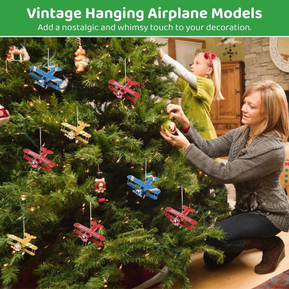 Metal Airplane Decorations 【Colorful Vintage Airplane Set】This set includes 9 intricately crafted vintage airplane models in vibrant red, yellow, and blue, 3 in each color, enough for your daily decoration needs. These models capture the essence of early aviation days, perfect for adding a nostalgic touch to any decoration theme. 【Nostalgic Vintage Design】Designed with a charming retro aesthetic, our airplane model decors transport you back to the golden age of aviation. They are a must-have for enthusiasts of vintage decor and a delightful addition for airplane aficionados, infusing an ambiance of history and whimsy to your collection. 【Reliable Tinplate Construction】Made from quality tinplate, the aircraft models are not only robust and long-lasting but also easily restore their shape if bent. The sturdy material ensures that they maintain their shape and color over time, making them a reliable choice for repeated use. 【Versatile Display Options】Each model comes with a convenient hanging string, allowing you to effortlessly suspend them from windowsills, tree branches, or bedposts. Alternatively, they can be placed directly on tabletops, shelves, or counters, offering versatile decorating options to suit any space. 【Perfect for Various Occasions】These retro biplane models serve multiple purposes, from home decor and photography props to toys and festive gifts for birthdays, New Year, and Christmas. They will bring joy and a sense of adventure to any setting, making them a perfect gift for all ages.