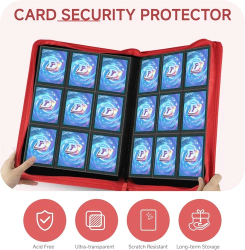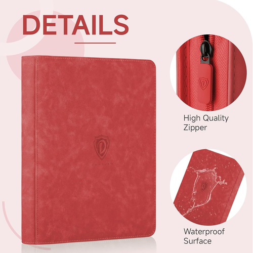 9 Pocket Card Binder,360 Pockets Trading Card Binder,Double Sided Pocket Collection Binder,Card Folder for MTG,TCG,Game Cards,Sport Cards,Red LuxeFusion Product Description Features 9 Pocket Card Binder: Our transaction card binder is double sided and has 20 pages to hold 360 cards.With fewer pages,you'll be able to find the cards you need in no time,perfect for storing your collection of cards and keeping them organised. Thoughtful Details: Different coloured card binders are matched with different coloured zips to meet your personalised needs.Side card pocket to prevent card spillage.Thickened shell design,give your collectible cards stronger protection. Superior Protection: The shell of the card binder is made of high quality PU leather,waterproof and durable,which can better protect your cards,and the surface is easy to clean.The zip design of the card binder better prevents the cards from falling out. Compatible for Different Cards: The sleeve size of the trading card binder is suitable for a wide range of cards,such as Football Cards,Hockey Cards,Baseball cards,MTG Card Game,Yu-Gi-Oh Card Game,Fuji mini Polaroid photos,Business Cards,Credit Cards,Coupons,Mini Photos,etc.Meeting your needs to collect different cards. Unique Gift: Our card binders come in a variety of different colours,you can choose as many as you like.You can give card holder to card collectors,boys and girls who like cards,suitable for Christmas,birthdays,Thanksgiving and so on,it must be a very special gift! Product Details Brand: Deoyibu Color: Red Material: Polyurethane (PU) Theme: Game Specific Uses For Product: Card Storage, Note Taking Recommended Uses For Product: Card Storage Target Audience: Unisex-Adults Model Name: TCB-SW-09 Included Components: Card Collection Album Special Feature: Hard Cover, Zipper, Premium PU Cover Pages: 20 Pages Size: 9-Pocket Number of Pieces: 9 Manufacturer: TCB-SW-09 Part Number: TCB-SW-09 Item Weight: 1.87 pounds Package Dimensions: 14.8 x 12.32 x 1.65 inches Country of Origin: China Item model number: TCB-SW-09 Special Features: Hard Cover, Zipper, Premium PU Cover Batteries Required?: No Brand: Deoyibu Color: Red Material: Polyurethane (PU) Theme: Game Specific Uses For Product: Card Storage, Note Taking 🚚 Free Shipping All orders ship free and fast to your doorstep. 🔁 Easy Returns Satisfaction guaranteed. 30-day returns, no questions asked. 💬 24/7 Support Contact us anytime; we’re here to help, day or night. Brought to you by LuxeFusion – Quality you can trust.