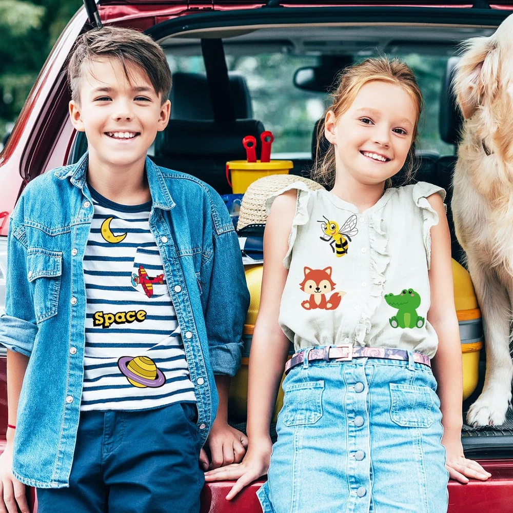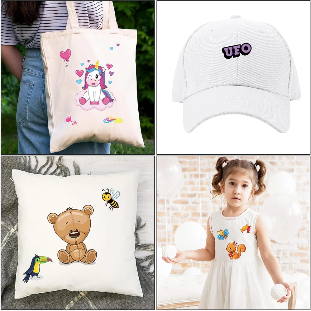 The Amount Of Package - 9 sheet patches are contained in the package, and each patch has a unique design, offering multiple choices for you to DIY crafts and decorations. Cute Design - Our iron on transfer patches are designed with cartoon patterns, such as animals, desserts, traffic and space, unique and attractive, bring a lot of fun to the holiday. Premium Material - Made of heat transfer vinyl, safe and reliable, wear resistance and high flexibility, making sure the patterns you design will not fade or deform, can be applied on most clothes. Convenient To Use - Our patches have proper size to be applied on various clothes, you just need to cut the patterns from the vinyl sheet and iron them on where you want them. Use your imagination to create personalized craft products. Wide Application - Our patches can be widely used in DIY crafts, you can print these patterns on T-shirts, bags, socks, hats, pillowcase and other fabrics to show your personality, or you can use them as gifts for family or friends. Product Description How to use: (When ironing, please cover the pattern with a layer of thin cloth (the old T-shirt is recommended) to prevent the pattern from melting due to the high temperature of the iron). For Household Irons TOOL:1,Ironing Pad 2, Electric irons( Do not steam iron) 3, Separator Paper