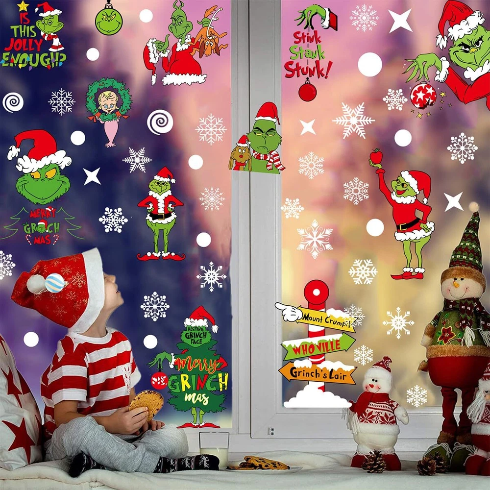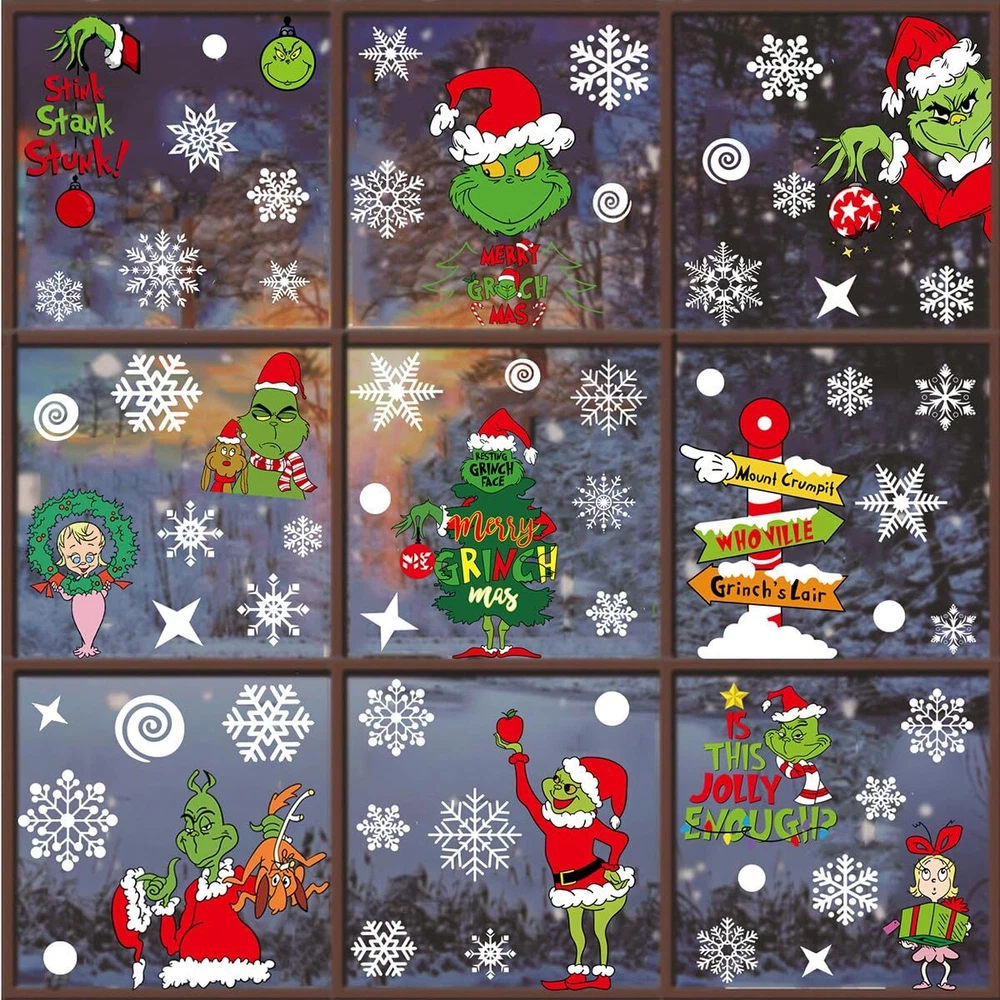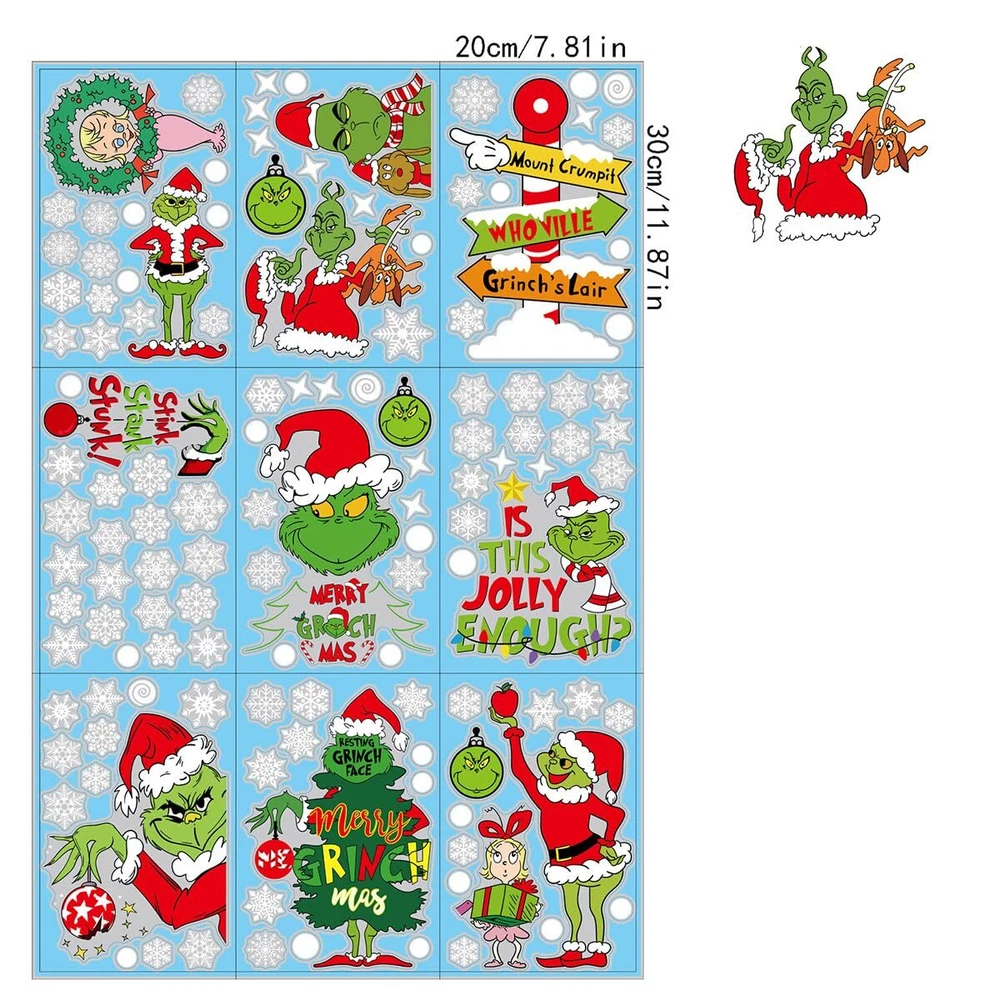 Winter Xmas Window Clings for Christmas Party Home Decorations Specification: Material: Double-sided PVC Color: as picture shown Sheet Size: About 13.8 x 11 inch(35*28cm) Package : 9 sheets Christmas winter window clings The Christmas window stickers is a great gift for your family and friends.These Christmas window decals will make your windows look festive and full of vitality in this Christmas. Hope you enjoy your time to decorate your windows with your family and friends. How to Use: 1.Make sure the surface is smooth and without any texture(like mirror and glass) 2.Clean the surface to make sure there is no dust and grease on the surface. 3.Pray a little water on the surface. Water will make them stick better. 4.Put the clings on and remove the remaining water. Glass Decals Work Well on All Kinds of Smooth Surfaces: 1.Suitable Surface: Use these Christmas window decals on windows,mirrors,doors,glass doors,shop window pane,ceramic tiles,coffee house or any other smooth surface. 2.Not Suitable Surface: Our Xmas window cling stickers are not wall stickers. NOT used as Christmas wall decals,ash surface. 【Package Including】 These Xmas window clings are holiday decorations for Christmas. You will get 9 sheets various styles of Christmas window decals,the cute vinyl window stickers are here to meet your needs for party decorations. These Christmas party decors are suitable for all kinds of window and door. 【Premium Material】 The Xmas Snowflake window clings Christmas decor is made of high quality PVC material which is odorless, eco-friendly and durable enough for long time indoor and outdoor use. The winter window supplies adopts a double-sided design and has the same visual effect from inside and outside the window glass. 【Easy to Use】Those winter Xmas window film are easy to stick on window or other smooth surface without using glue;and you can peel the Christmas stickers off from window easily without leaving residues for repositioning or reusing it;clean the surface with towel before installing it. 【Widely Use】Winter window decals are great for any smooth surface, such as glass door, shop window pane, ceramic tiles in kitchen or bathroom, home appliance, dorm or retail store, coffee House, restaurant. 【Christmas Gift】 These Xmas window stickers are perfect for Christmas parties, Christmas decorations indoor,kitchen refrigerator decals. blend well with other Christmas decor to bring out joy feel. They are also fun gifts for kids,your friends and families. It helps add more Christmas day atmosphere.