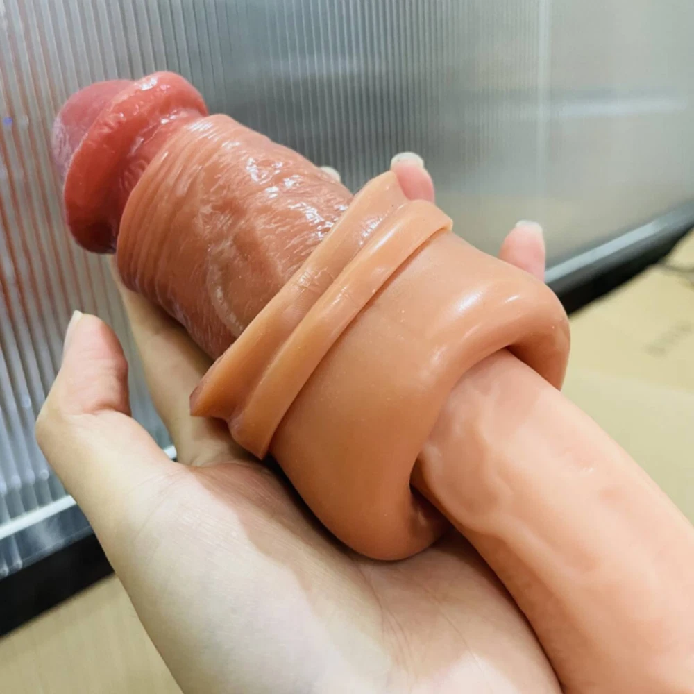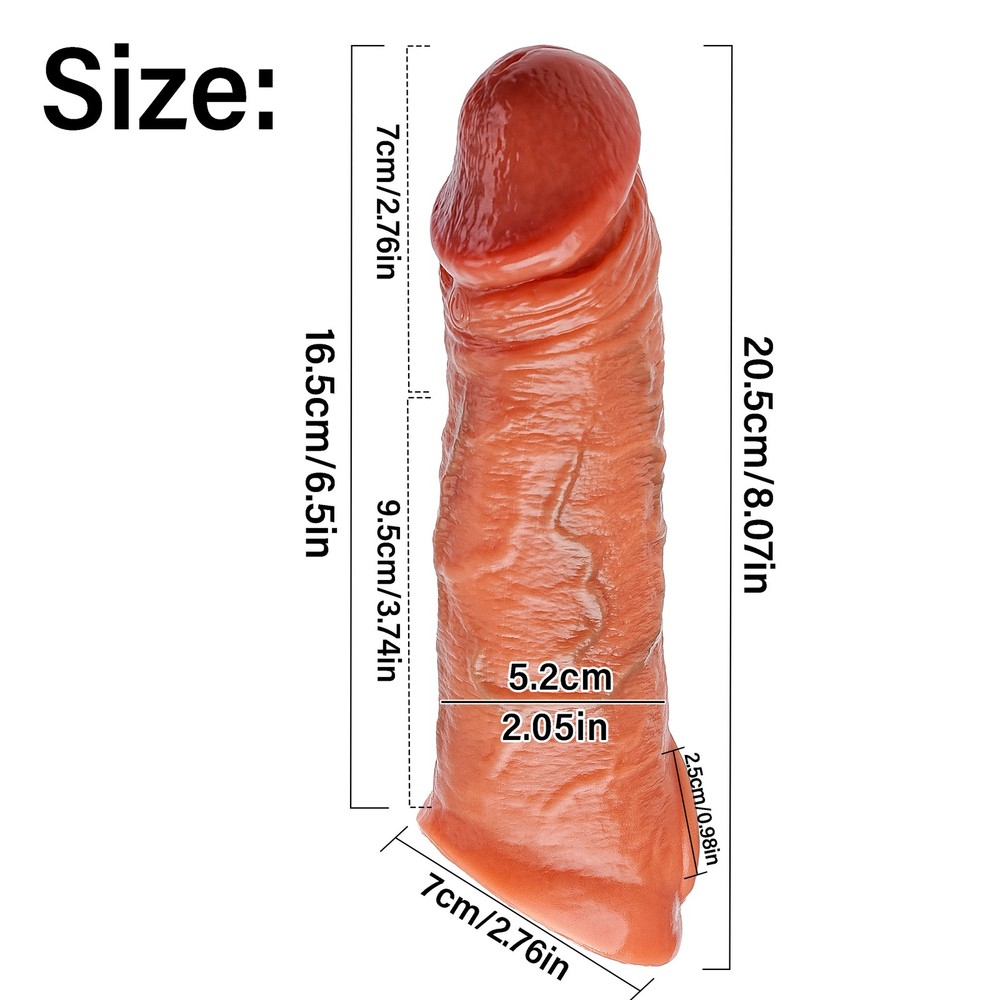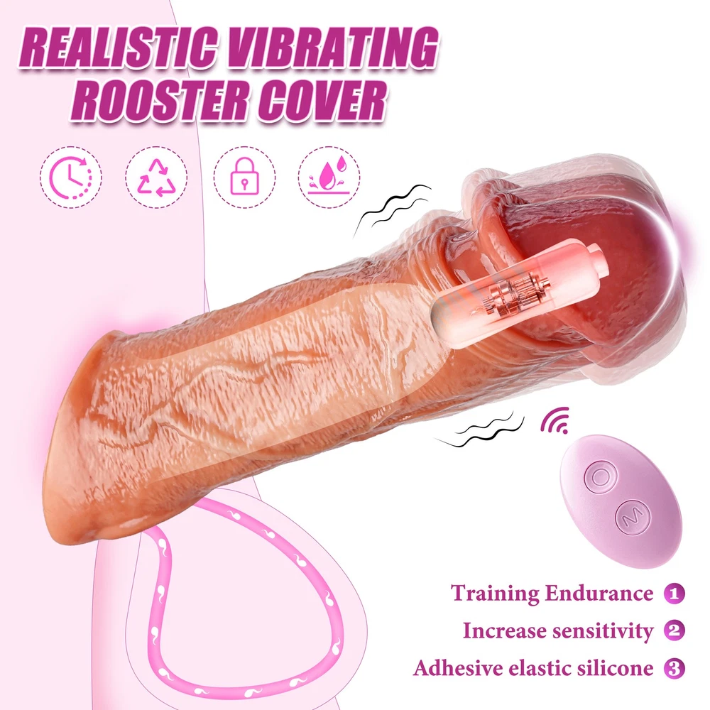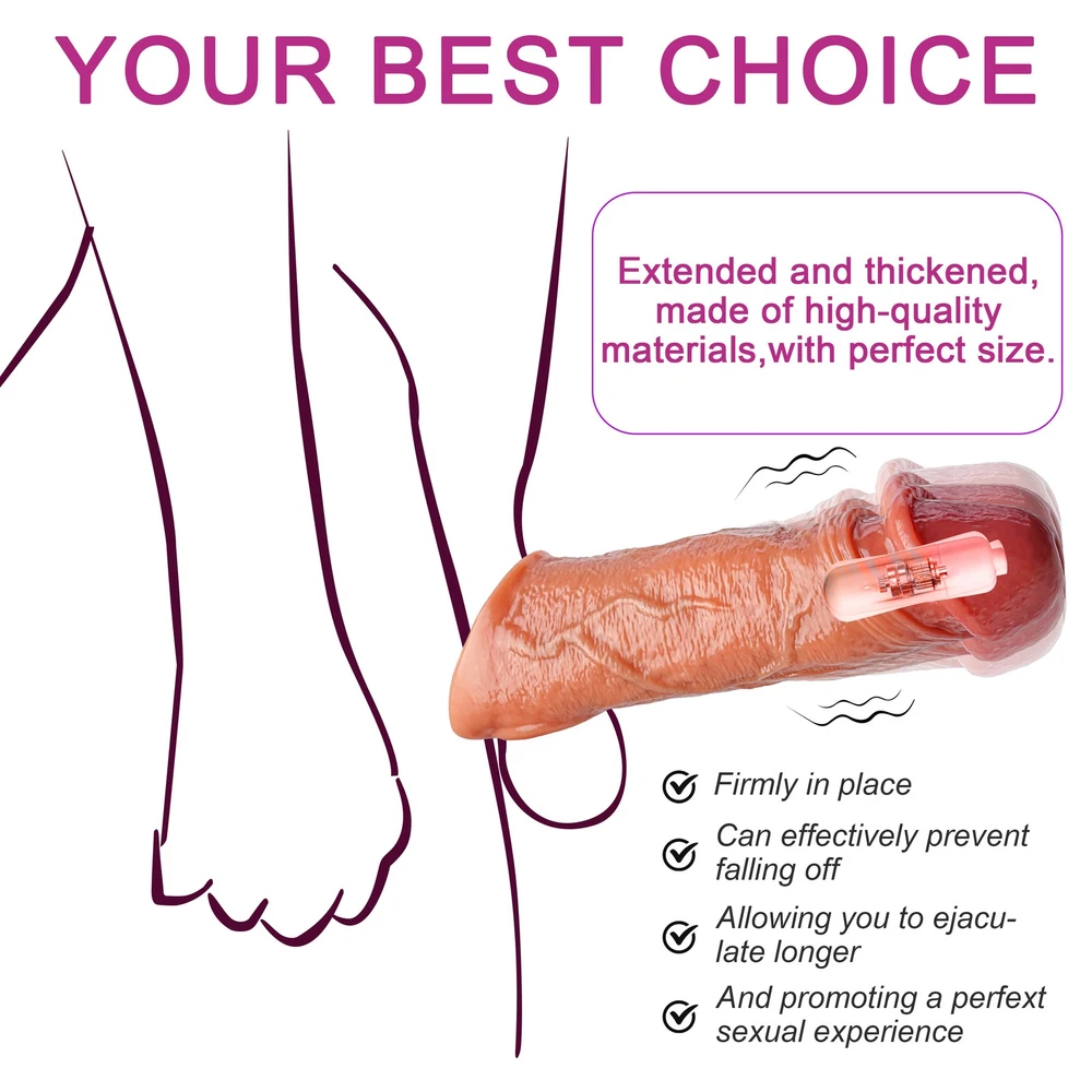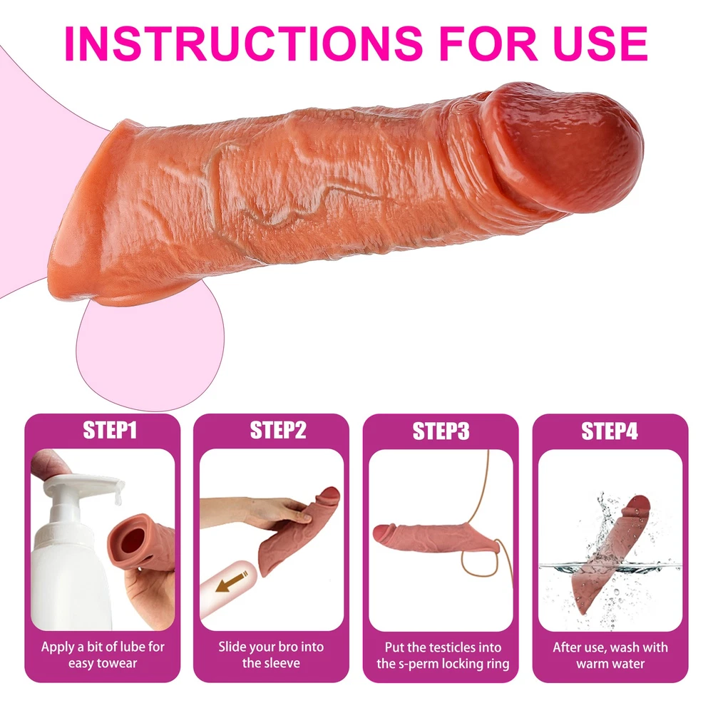 9 Vibrating Modes Penis Sleeve Cock Ring, All Silicone Sex Toys for Men Women, Penis Sleeve Extender Enhancer ❤ DISCREET PACKAGING - No senstive information on the box, avoiding unnecessary embarrassment,Your privacy is our priority. Feature: Material: Silicone, ABS Color: Flesh Size: Total length: 20.5cm/8.07" Sleeve length: 16.5cm/6.5" Head diameter: 4.7cm/4.85" Bottom diameter: 5.5cm/2.17" Weight: 206g Operating Time: Approximately 60 minutes (full power) Charging Time: Approximately 60 minutes Function: 9 Vibrations/wireless remote control About the item Vibrator - Press and hold the ON/OFF button for 2-3 seconds to switch the device on. - Once switched on, the vibrator will enter standby mode. - Press the ON/OFF button once to switch vibration modes (9 modes in total) - Press and hold the ON/OFF button for 2-3 seconds to switch off the device. . Remote control - Press button once to switch standby vibration modes (9 modes in total). - Press and hold the button to switch off the vibration mode and return to standby mode. ❤Package: 1* Penis Sleeves 1*Remote control 1*charging cable