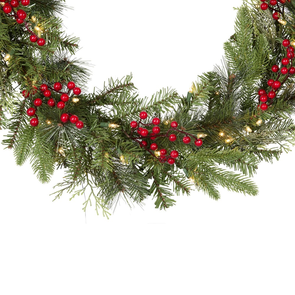 Designed with a Classical branch base, this pre-lit artificial Christmas garland is 9 feet long and decorated with clusters. This garland features over hundred individually crafted branch tips, creating a lush and full bodied hanging decoration that is sure to impress family and friends alike. Suitable as an indoor or outdoor Christmas decoration, drape this garland over any door, window or entryway to add a festive feel to any area of the house. Constructed with sturdy, high quality materials and hypo-allergenic, fire-resistant needles, this garland is built to bring holiday cheer for years to come. At , we believe that special holiday memories don’t have to be far and few between. This Christmas season, let our decorations transform your home while you focus on creating more of those magical moments.