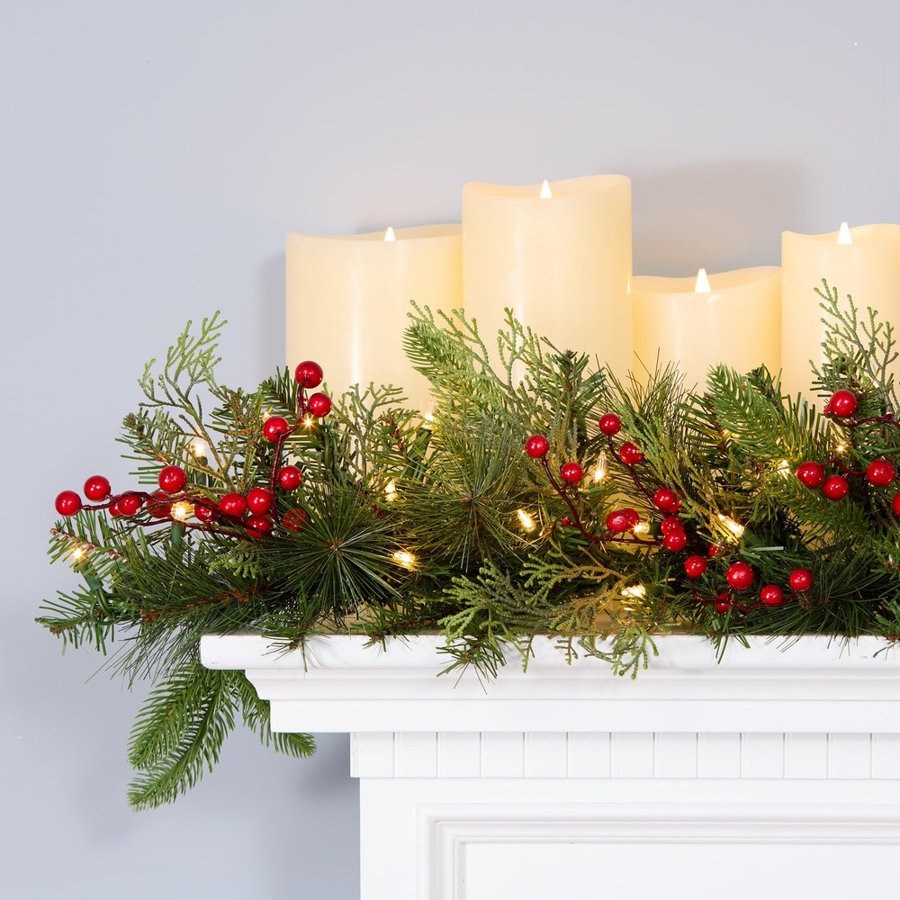 $ 6.829Ft Prelit Christmas Garland 50 Colorful Lights Snowy Tips Red Berries Pinecones