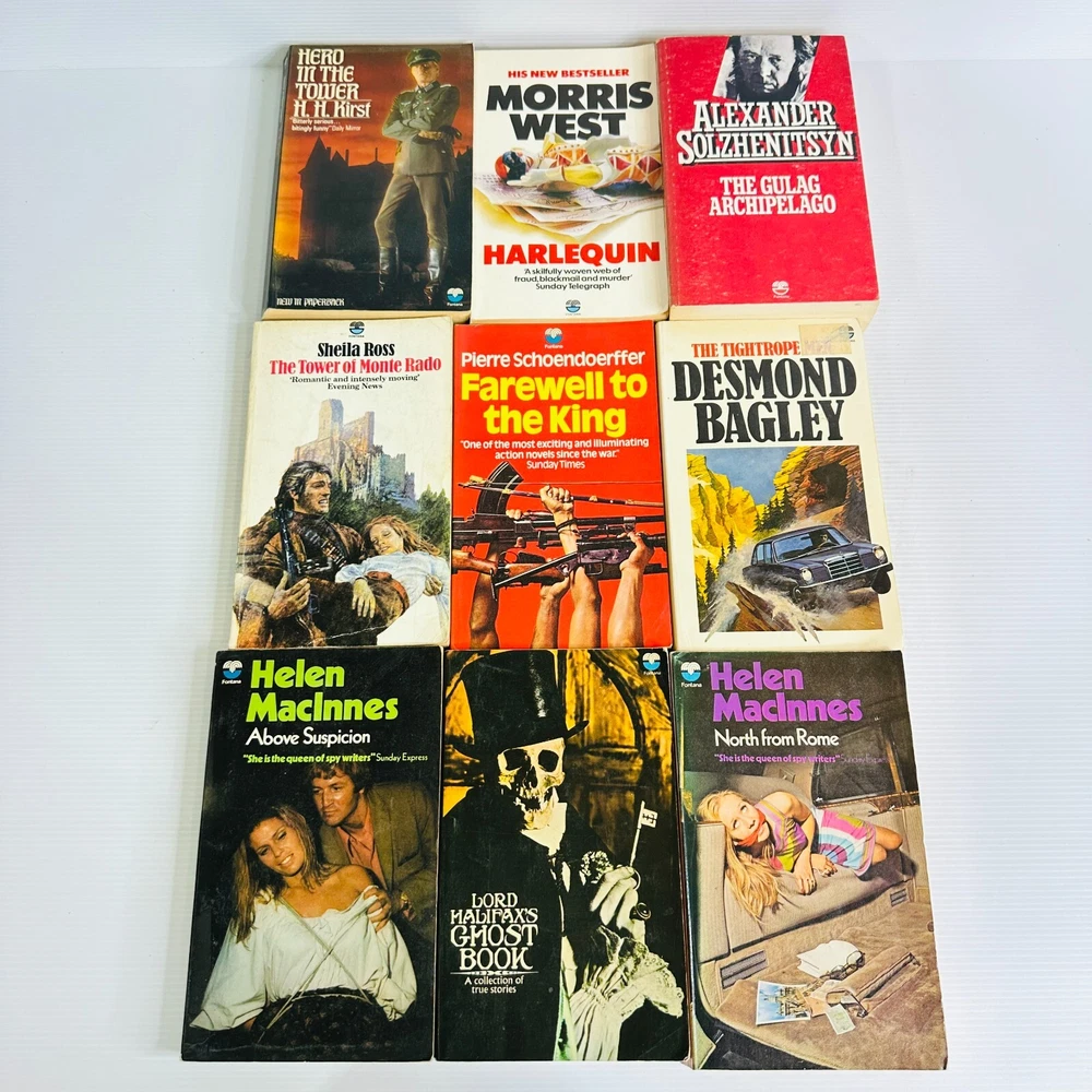 9 x Fontana Classic Paperback Books - Thriller, Crime, Mystery - Bulk Lot Bundle Condition: Book is pre-owned. Please see photos for condition details and read the description for more information. FAST FREE Australian-Wide Shipping: Enjoy free standard shipping via Australia Post within Australia. Express Post is available as an added option for quicker delivery. International shipping is also available for overseas buyers. Seller Information: Australian seller, smoke-free, pet-free, and a working mum. Adding new book listings daily to my store. Save me as a seller. Packaging: Books are shipped in strong branded Australia Post, Australian-made, water-resistant padded mailers to ensure safe delivery.