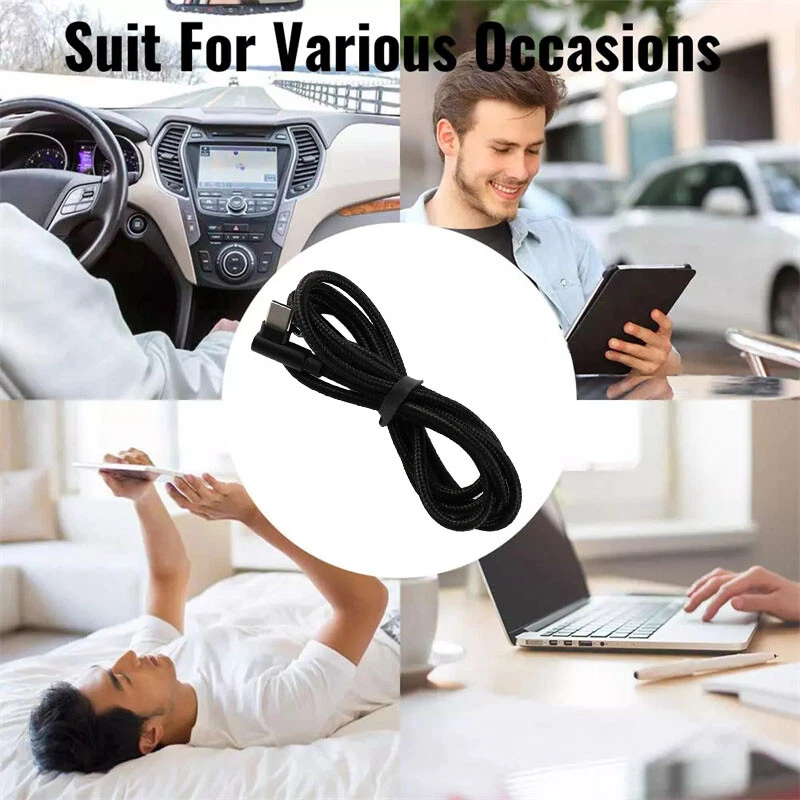 Absolutely love these USB-C cables! The 90-degree angle design is a game-changer—no more awkward bends or strain on the port. Fast charging works flawlessly, and the braided nylon feels super durable. Perfect length options, and the aluminum connectors add a premium touch. Highly recommend for anyone needing reliable, high-speed charging!