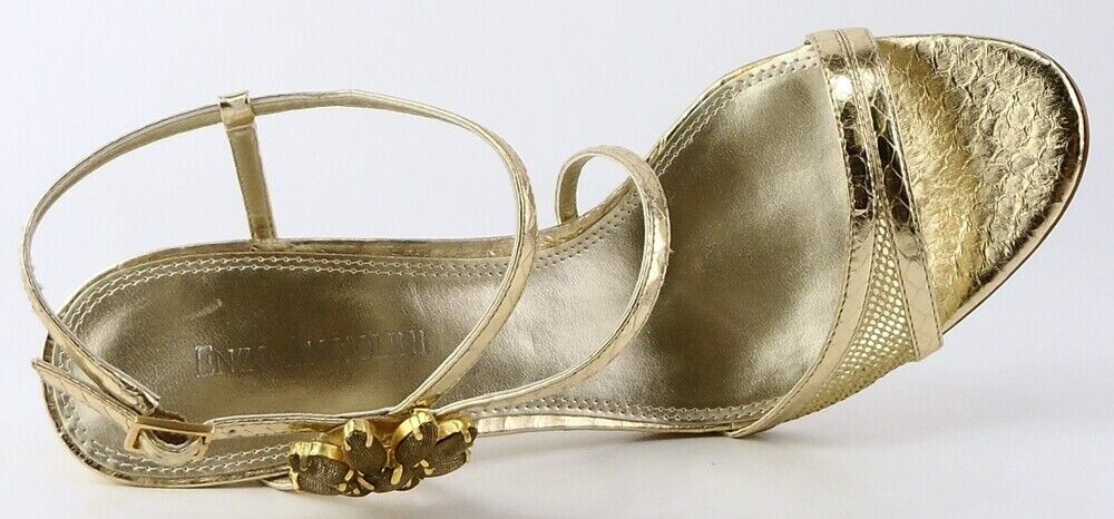 New/ clearance in original box Leather/ Texture upper; Leather lining; Man-made sole Covered heel measures 4" * Decorative rhinestones on the side Open toe design *Measurements are hand taken for every item we sell. Every item is carefully inspected to ensure that you receive a quality product. Designer Shoe Box guarantees this product is 100% Authentic