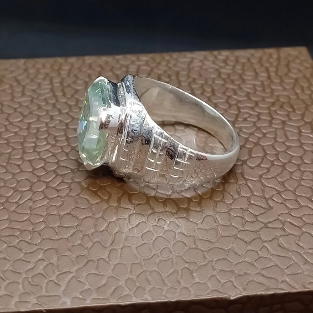 $ 87.2818.60 Ct Emerald Cut Blue Diamond Ring in 925 Silver Certified Statement