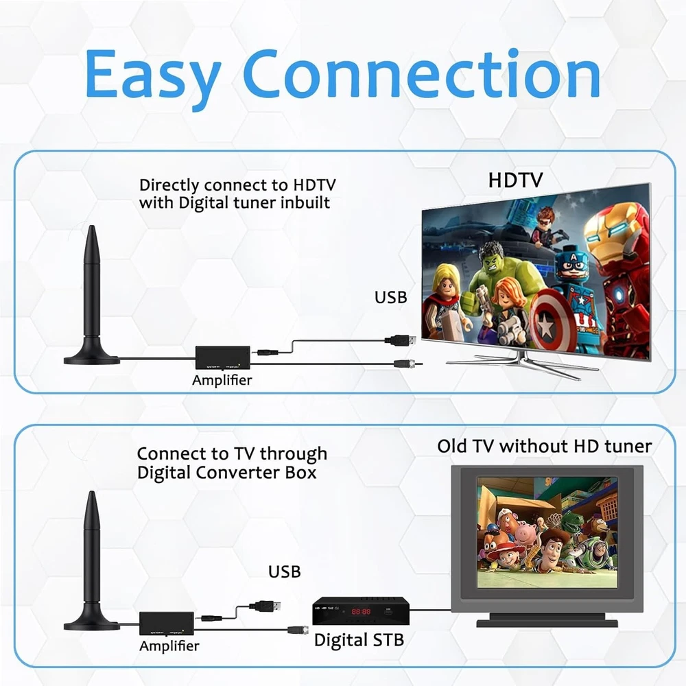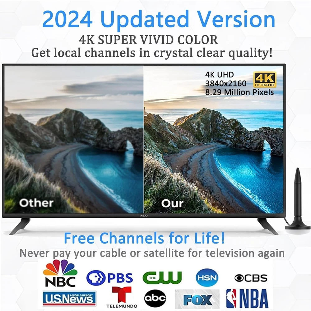 900+ Miles TV Antenna, 2025 Digital TV Antenna for Smart TV and All TV, Strong Magnetic Base for Easy Installation, 360° & Long Range Reception for HDTV Channels-Support All TV's - 10ft Long Cable 【Enjoy Free HDTV Channels】Never Pay Monthly Bill - With this digital TV antenna for smart TV, you can watch crystal clear HD channels without cable service and enjoy major networks like CBS, ABC, FOX, NBC, CW, PBS, ION, UNIVISION, TELEMUNDO, UNIMAS, AZTECA and so much more! Stay on top of live local programming without spending extra money or losing any of your favourite local TV channels. 【Industry Leading Technology】This digital TV antenna adopts latest eco-friendly flame retardant double PC soft material(not other PVC material) bring moisture and lightning protection to our smart 4K HDTV antennas. The unique plastic shell, the whole network and all the accessories are all pure copper to ensure the loose contact. Now you can enjoy your favourite TV shows without worrying about thunderstorms. 【360° Reception & Magnetic Base】The indoor HDTV antenna 360° reception, whether the antenna is installed on the TV stand or on the table, you can receive the crystal clear picture. MAGNETIC BASE FOR QUICK AND EASY INSTALLATION- Magnetic base allows you to install your antennas on most metal surfaces and get your TV signals in minutes. 【Compact and Small Design】Don't be put off by its size! It's tiny but mighty; it doesn't take up much space, perfect to blend in with its surroundings and easy to hide, NOTE: Always remember to re-scan for channels after moving the antenna.