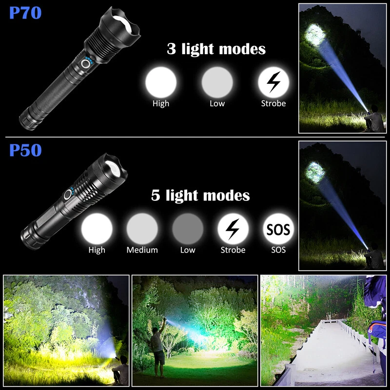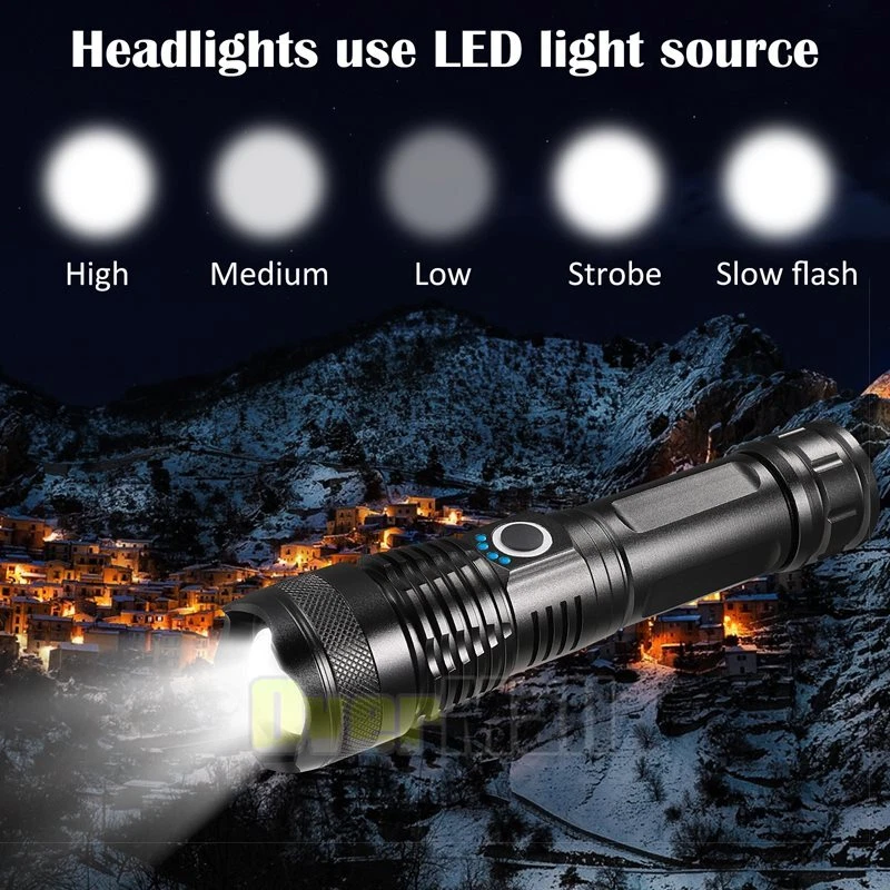 9000000 Lumens LED Flashlight Tactical Light Super Bright Torch USB Rechargeable