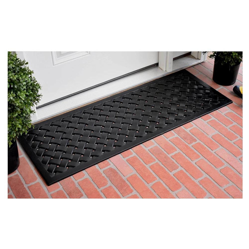 Made of 100% rubber, this heavy-duty weave patterned doormat stands up to traffic and provides resilient coverage at your entry. Extremely durable, this mat is self-draining and weather tolerant. Hose clean. Over-sized to provide more coverage Durable, 100% rubber that won't crack or buckle Resists fading All-season, weather tolerant Dimensions: 18" x 48" x 0.60"